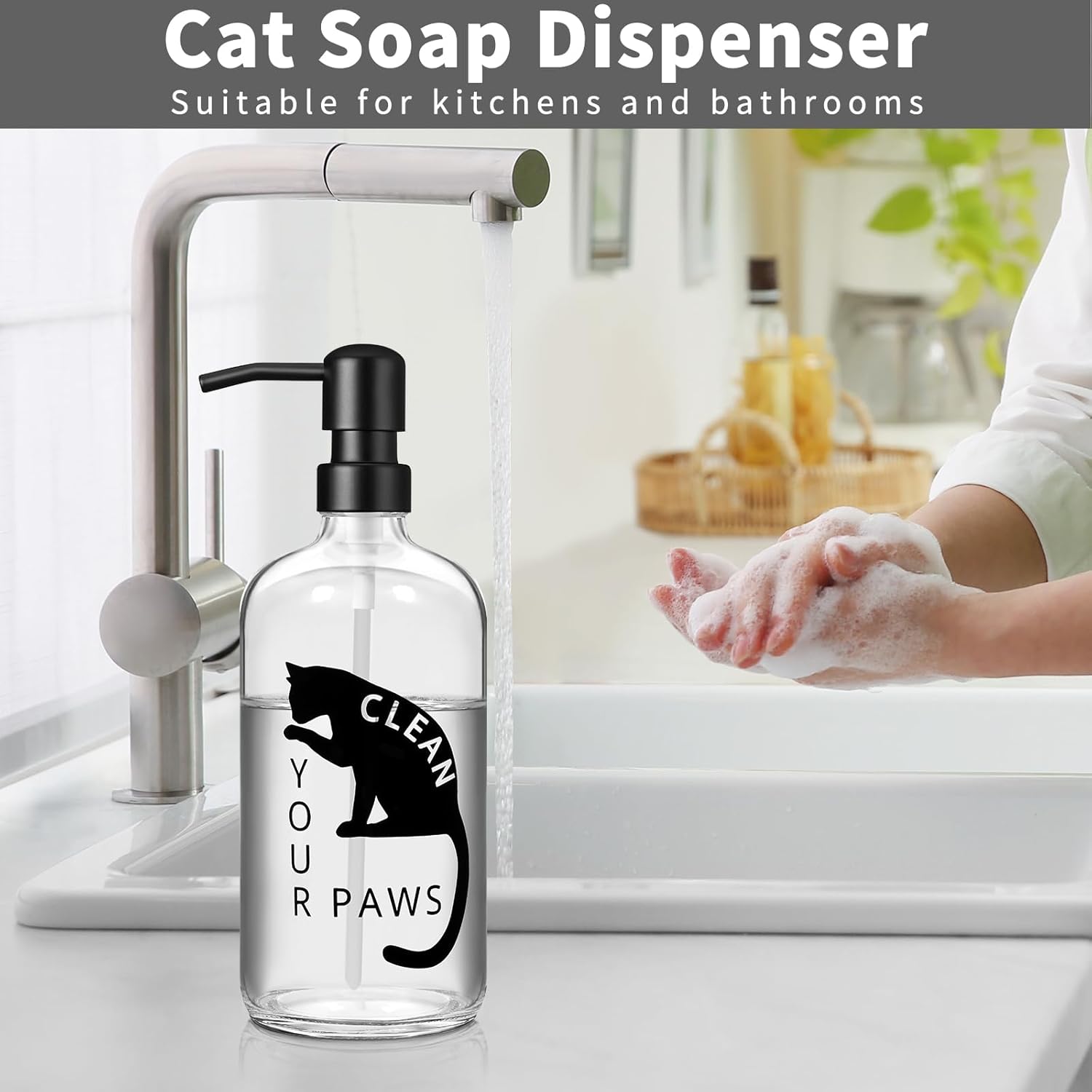 - Charming Cat Design:This clear glass soap dispenser with a playful black cat silhouette adds personality to any kitchen or bathroom a perfect decorative accent for cat lovers and pet friendly homes