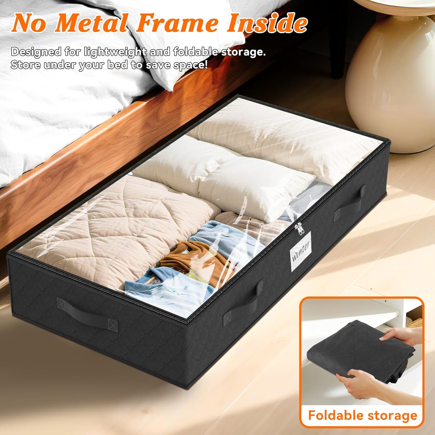 - Space Saving & Soft: Please note! Our under-bed storage units contain NO internal frames or cardboard. Soft yet long-lasting. Slim and compact design allow you to maximize every inch of space in your home and make organizing your home easier