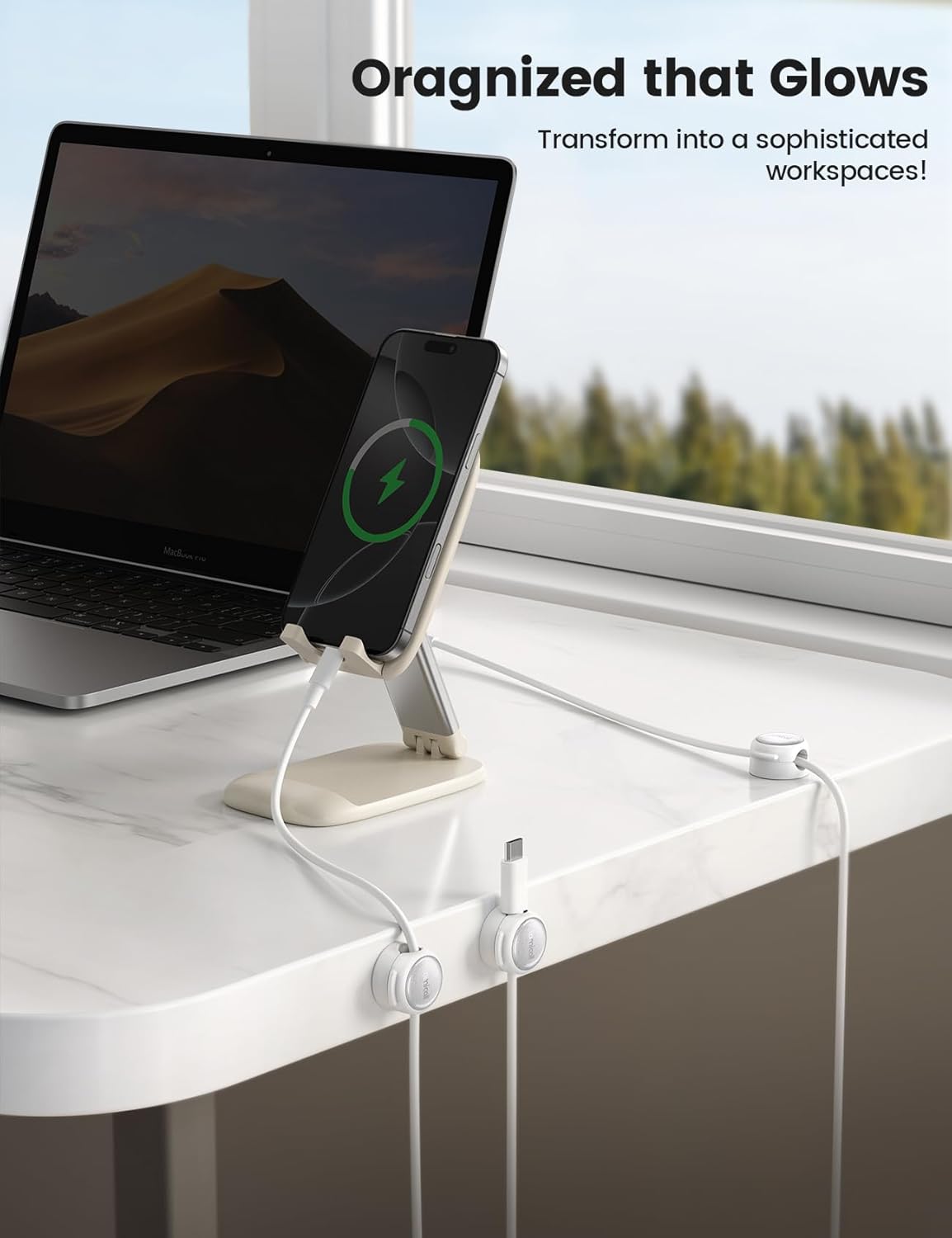 - 【Effortless Magnetic Locking】Our cord holder clips feature 6N strong magnetic that snaps shut with a satisfying click. The thoughtfully rounded cap lets you open clips with one finger and hold cords instantly. The cord organizer can securely hold phone charging cords, HDMI cords, household wires without popping & falling off. [Installtion Tips] After sticking the cord holders, please WAIT for 30 minutes before use for optimal adhesion.