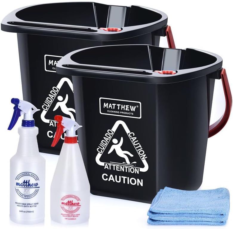 Matthew Cleaning 4.2 Gallon Mop Bucket, Heavy Duty Plastic Cleaning Bucket with Built-in Pour Spout, Mop Holder and Comfort Grip Handle, House and Commercial Cleaning Supplies, 2 Pack Black