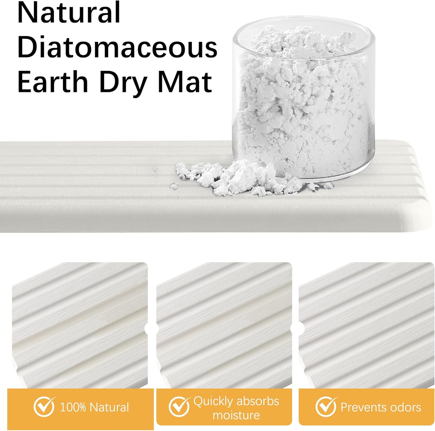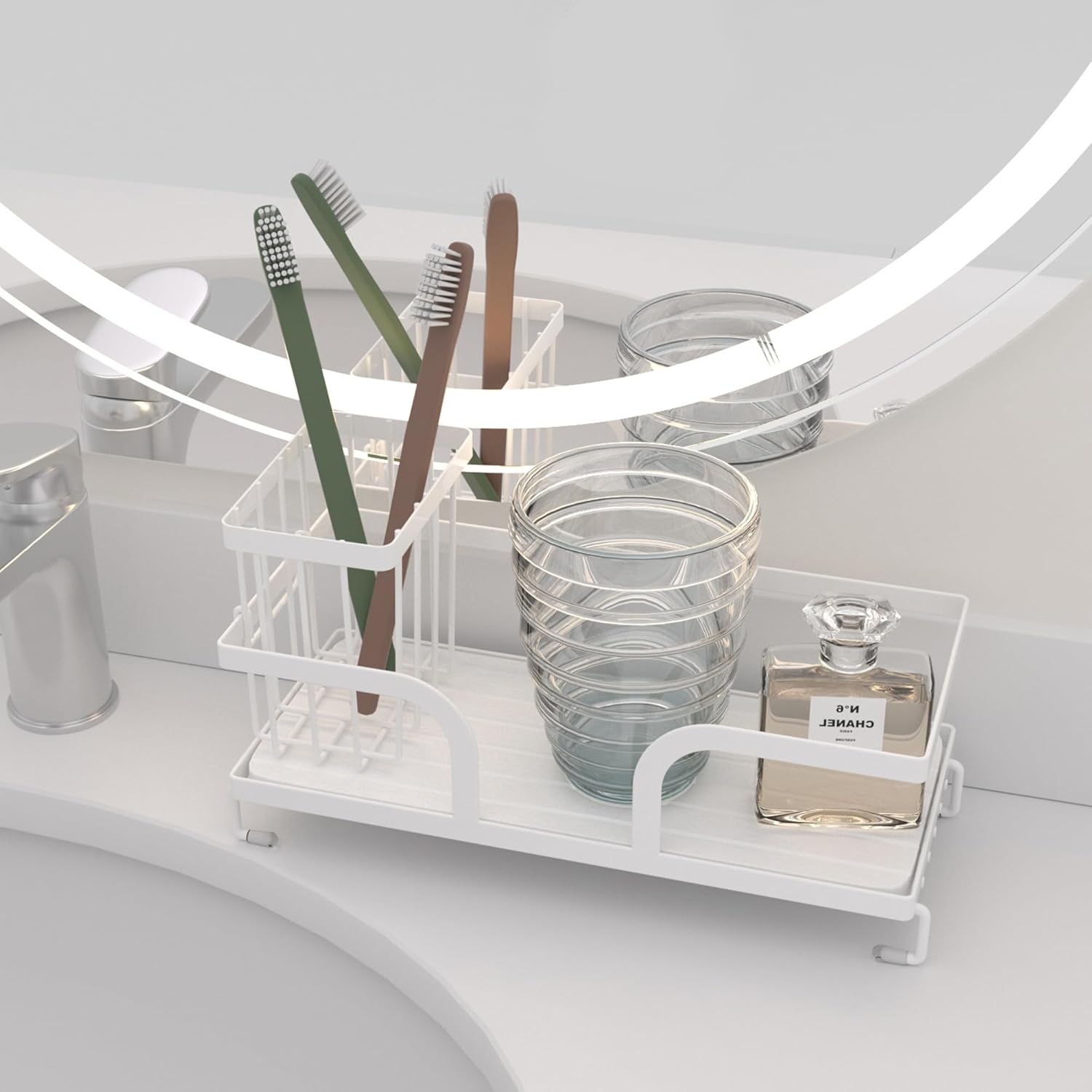 Bathroom Counter Organizer,Perfume Tray,Stone Drying Mat for Kitchen Counter,9.7" x 4.2"x 3.2", Ideal for Bathroom Organizers and Storage, Vanity, Skincare, Present, and More,2PCS White