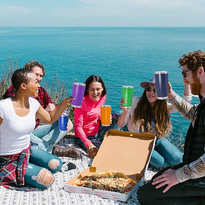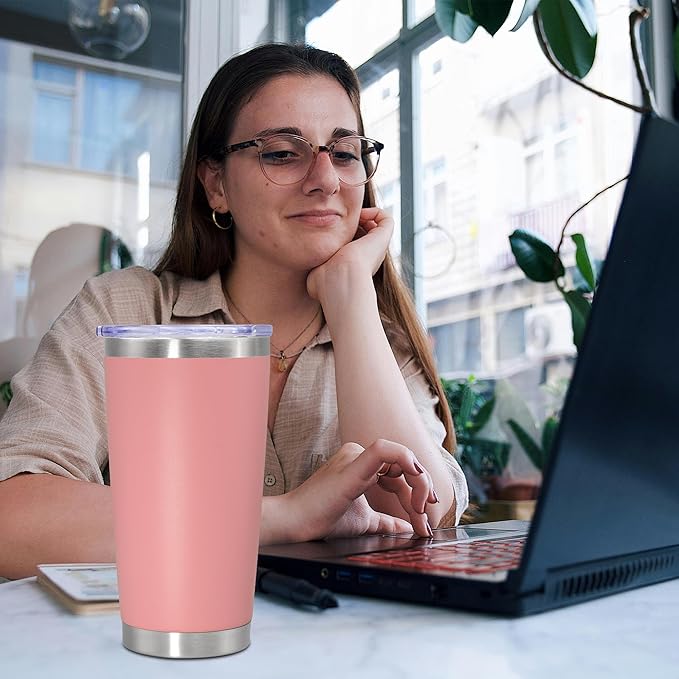 - POWDER COATED & EASY TO HOLD - The outside of the insulated travel tumblers is non-toxic frosted powder coating. There are 12 colors of powder coating, there is always a style you like. The frosted texture of the tumblers’ outer wall makes it easy for you to hold and the outer wall of the tumbler will never hang water droplets. In addition, Our insulated tumblers are also suitable for laser engraving, vinyl decals or color painting