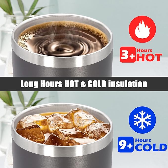 - DOUBLE WALL & VACUUM INSULATION - Thanks to the double wall vacuum insulated, the heat or cold transfer rate from your beverage to the outer wall of the tumbler is slowed down, which allows our tumblers to keep hot for over 3 hours and cool for over 9 hours