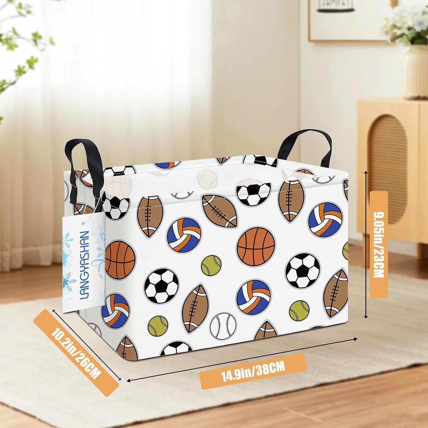 LANGYASHAN Rectangular Storage Bin Collapse Canvas Fabric Cartoon Storage Basket with Handles for Organizing Home Kitchen Boys and Girls Toys Office Closet Shelf Baskets (Rec Colorful Balls)