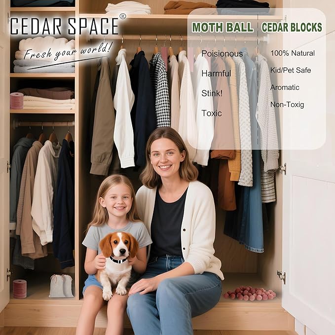 - Pure Natural Cedar Wood - Our cedar balls and cedar rings are made from 100% American Eastern Red Cedar, with the wooden blocks only undergoing polishing and packaging processes without any artificial ingredients added. It is safe for both babies and pets.