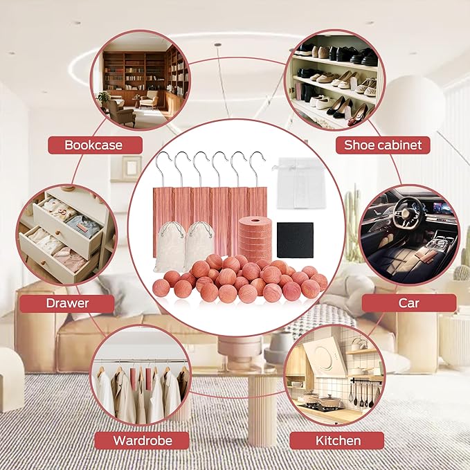 - The Fragrance of Nature - Place cedar planks and cedar balls in cabinets and drawers, they will emit a relaxing forest scent, making your clothes smell fresh and helping you protect your closet.