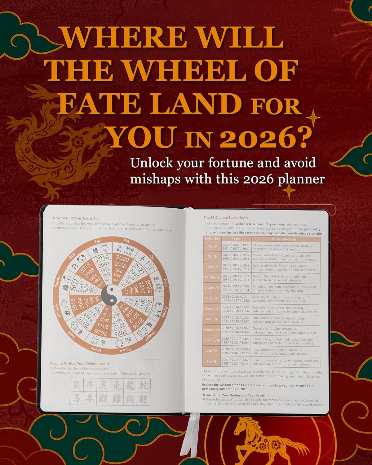 - Cross-Cultural Design: Combines Western daily planning with Eastern zodiac guidance for 2026; includes personality tips and yearly forecast for each Chinese zodiac sign