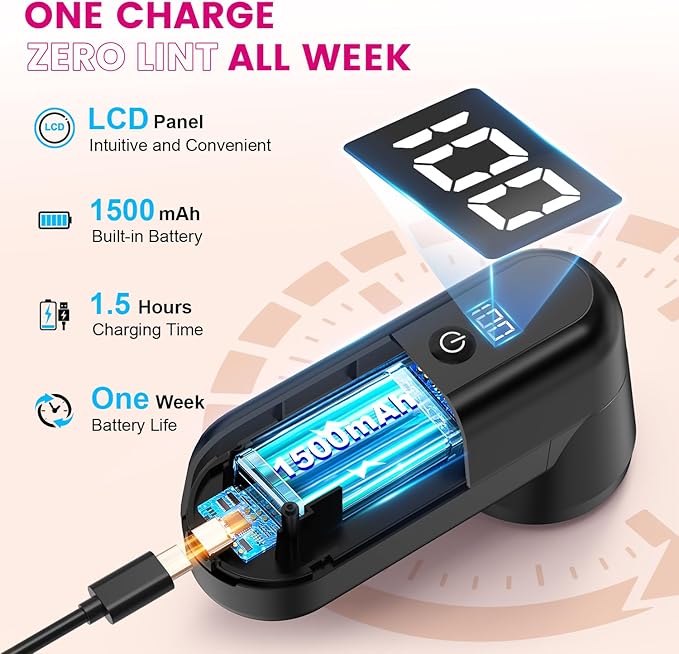 - EFFICIENT LINT REMOVAL & LONG LASTING LIFE: Ziitty lint remover for clothes has 6 blades, its powerful motor rotates at high speed, removes lint in seconds, and the blades rotate with a strong suction, which sucks all the lint into the collection box for quick and easy cleaning. Equipped with a small brush that can easily sweep away any remaining lint. One Charge Zero Lint All Week:Adopts Type-C rechargeable design, fast charging and long-lasting battery life