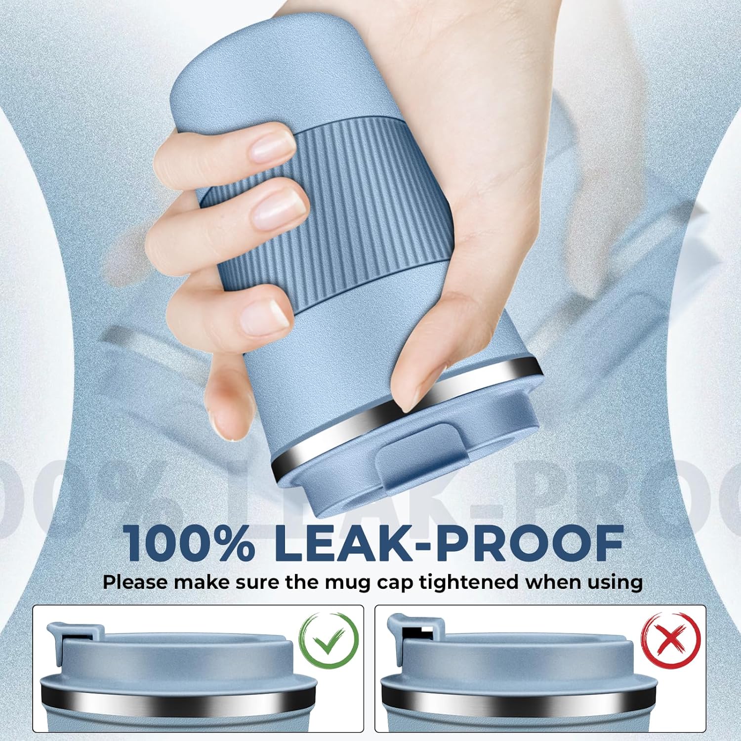 - Leak-Proof & Easy to Clean: The travel coffee mug features a secure screw lid with a sealing silicone strip and a convenient one-hand 180° flip-top snap for splash-free sipping, the wide mouth allows for easy filling and cleaning, comfort-grip silicone sleeve ensures a non-slip, secure hold, quiet base prevents slip