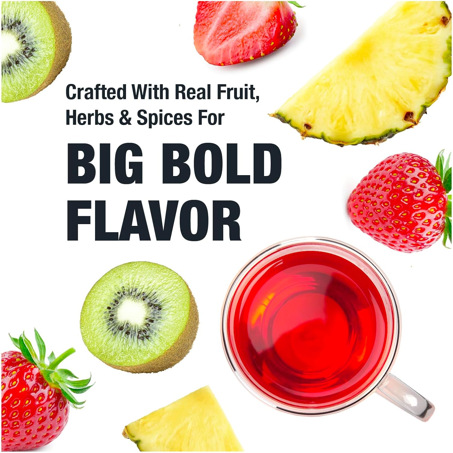- NATURALLY CAFFEINE-FREE: Indulge in the rich flavor of our Strawberry Kiwi hot and cold brew tea bags without the concern of caffeine. Whether you’re looking for a soothing beverage in the evening or a refreshing drink throughout the day, our organic dried fruit tea is the perfect caffeine-free choice for all-day enjoyment.