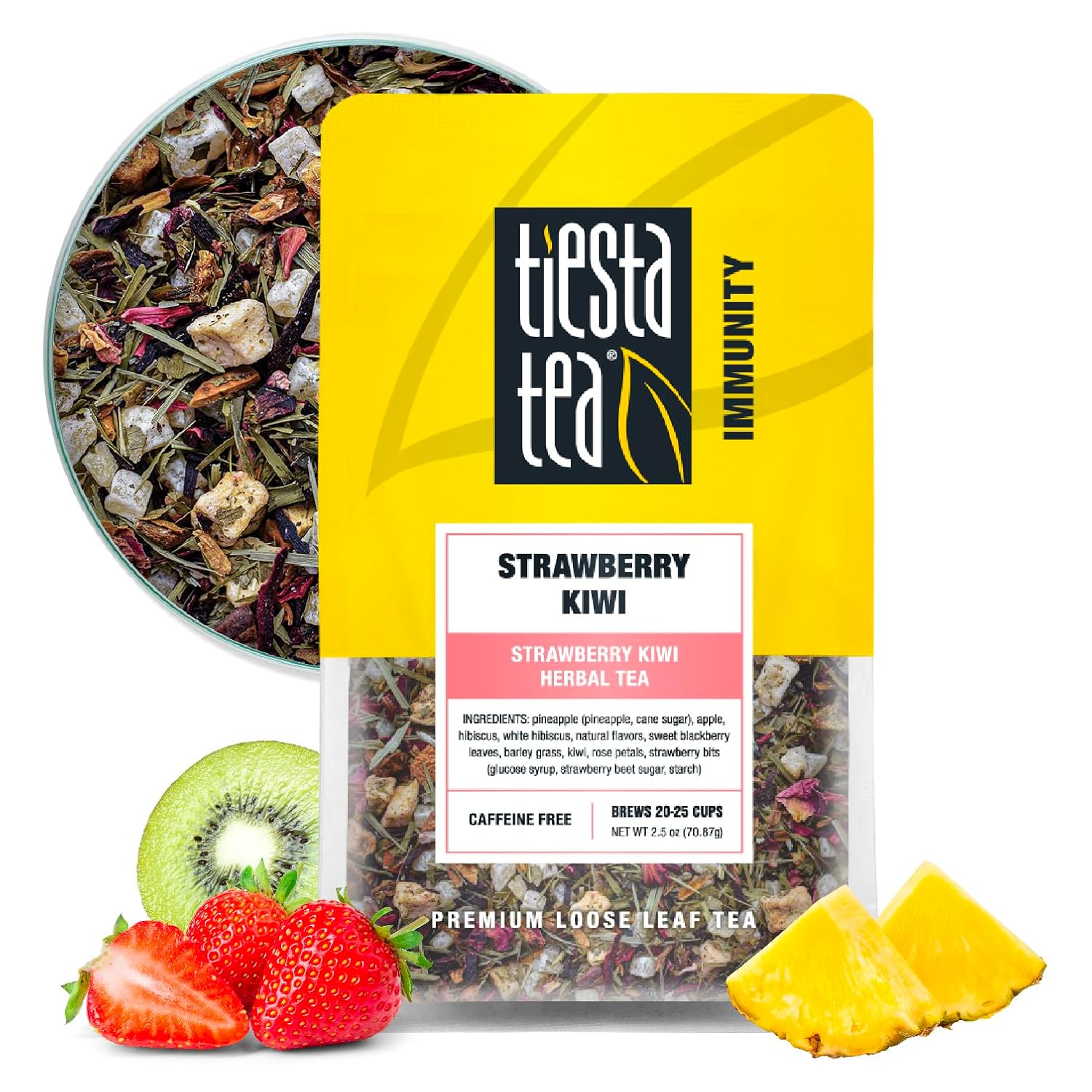 Tiesta Tea - Strawberry Kiwi Herbal Tea, Loose Leaf, Strawberry Hibiscus Kiwi Fruit Tea, Premium Caffeine-Free Herbal Blend, Make Hot or Iced & Up to 25 Cups, 2.5 oz Resealable Pouch