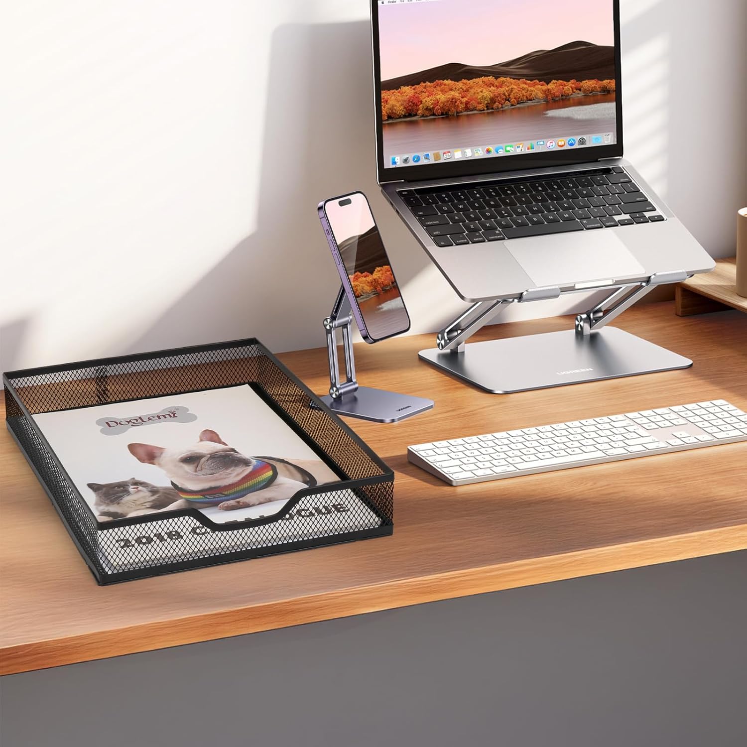 - Smart Design for Efficiency:Multi-divider layout keeps small items (pencils, clips, makeup brushes) sorted. File holder - Curved opening allows quick access to papers or notebooks. Both trays maintain a sleek, organized look.