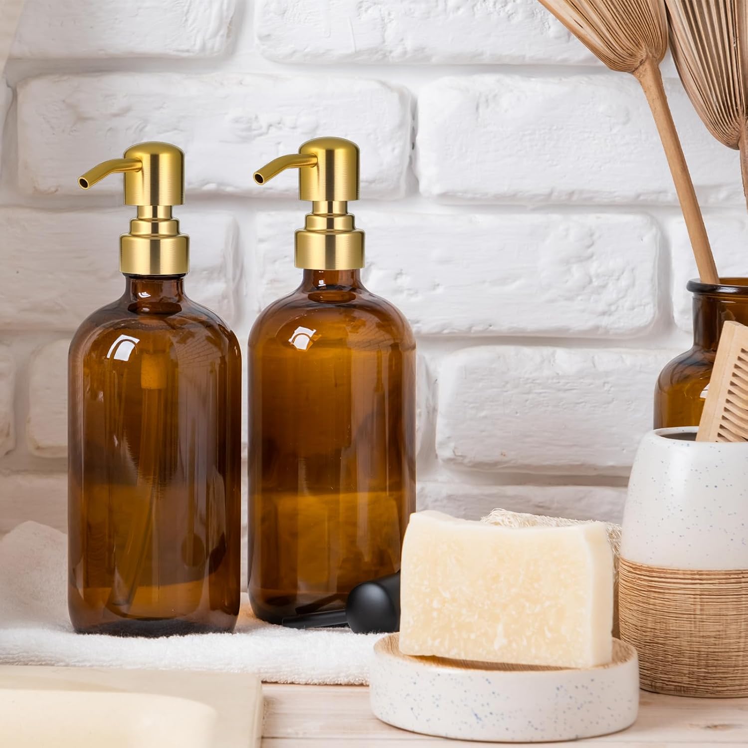 2 Pack Gold Soap Dispenser Pump Replacement, Stainless Steel Hand Liquid Soap Pump for Regular Mouth Bottles Standard 28/400 Neck Size for Hand Dish Soap Bottle and Lotion