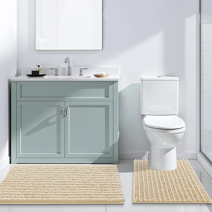 Arotive Luxury Chenille Bathroom Rug Mat, Extra Soft Thick Absorbent Shaggy Bath Rugs, Non-Slip Machine Wash Dry, Plush Bath Mats for Bathroom, Shower and Tub, 36x24, Cream Beige
