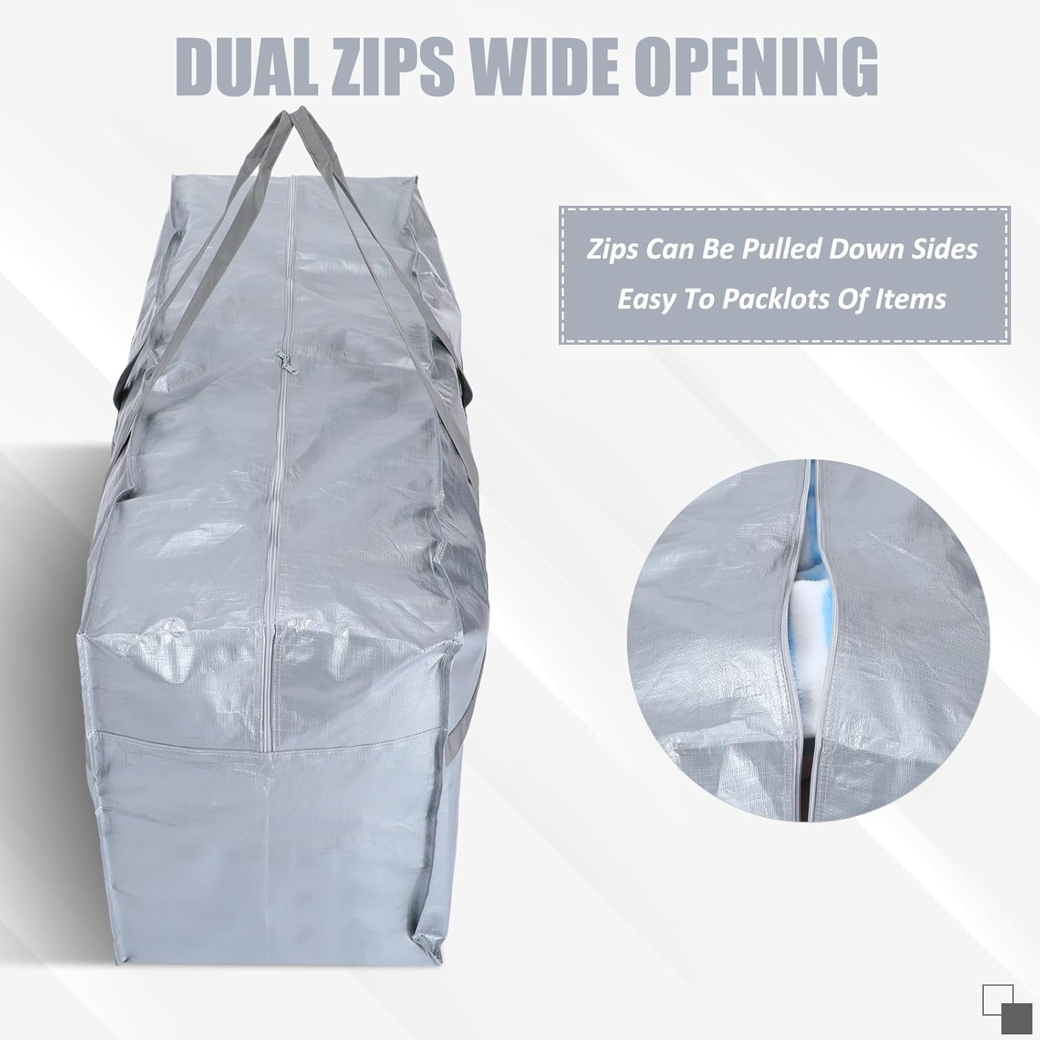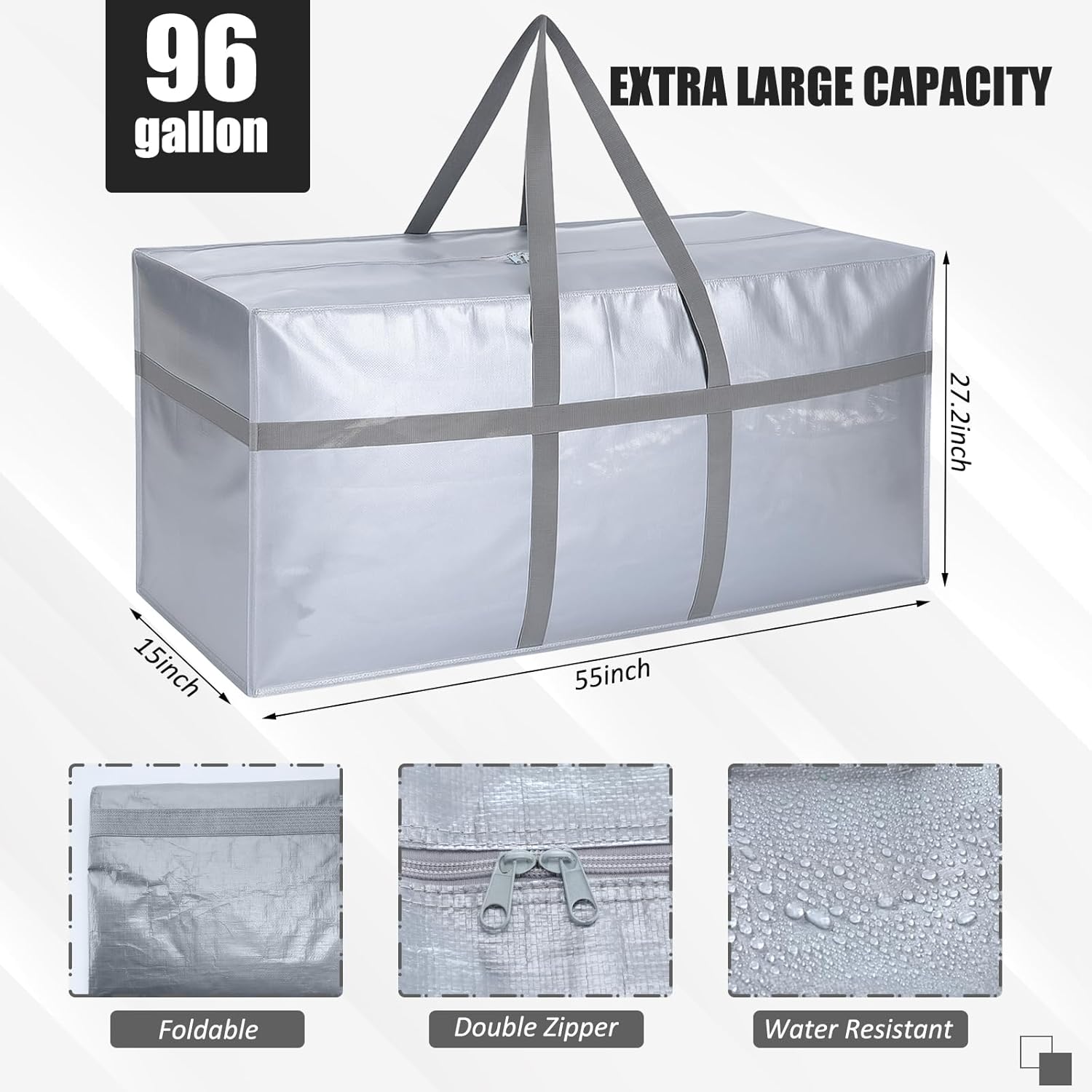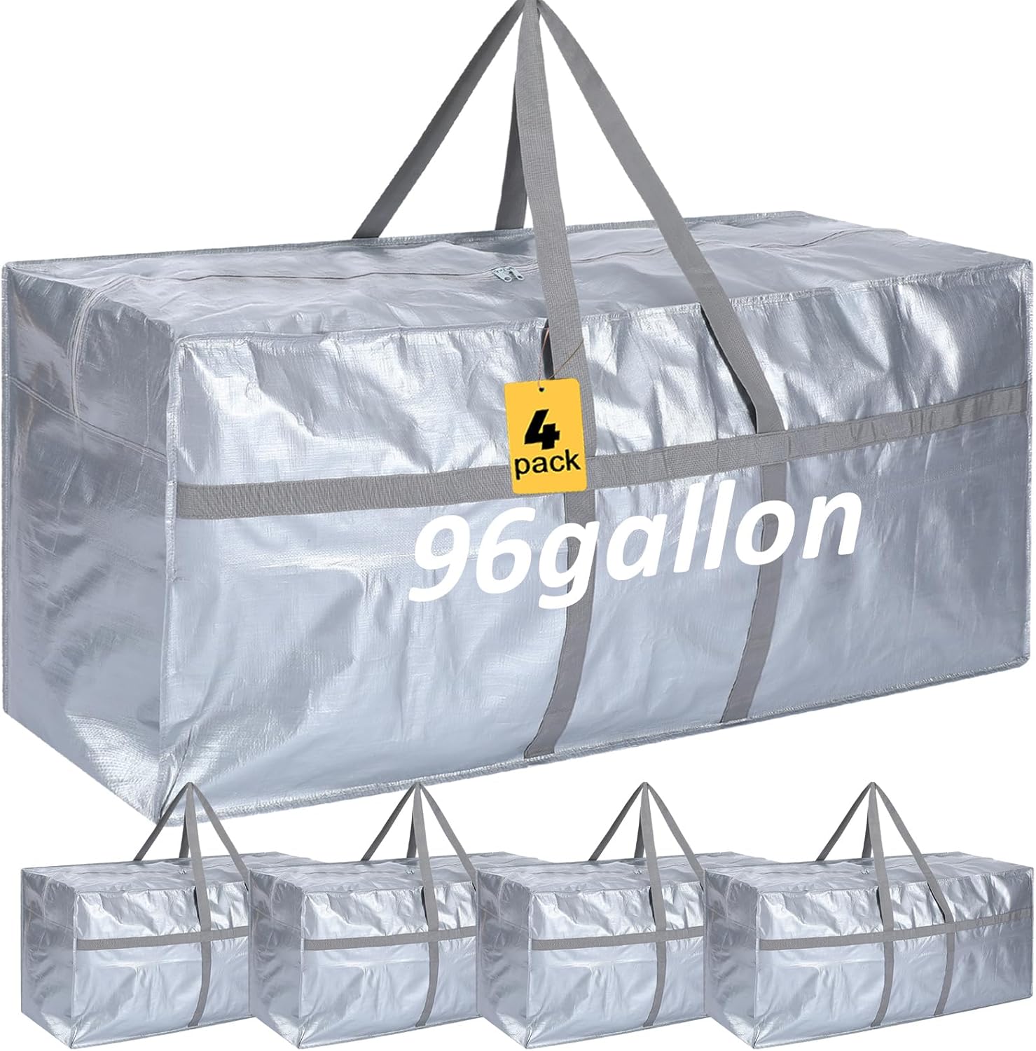 4 Pcs 96 Gallon Large Moving Bags with Zipper and Handles Foldable Storage Duffle Bags Heavy Duty Extra Large Totes for College Dorm Travel Clothes Blankets Bedding Moving (Silver)