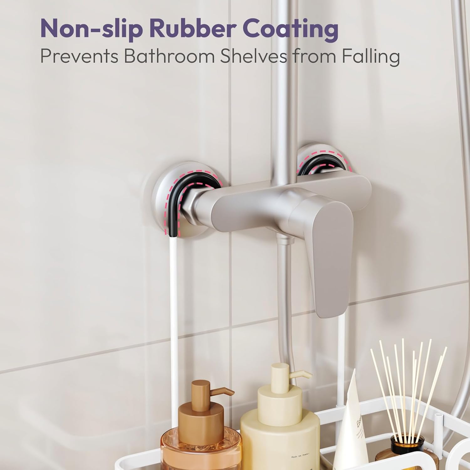 - [Heavy-Duty Support] Shower hanging organizer comes with anti-slip rubber pads and strong suction cups to hold the rack securely in place — prevents wobbling or slipping, even when fully loaded