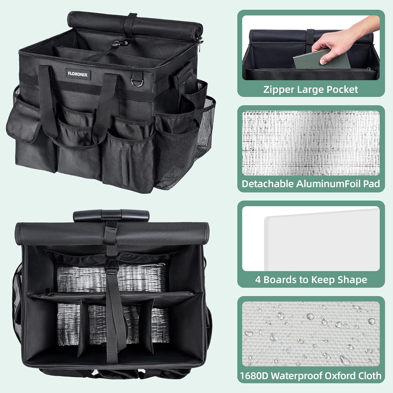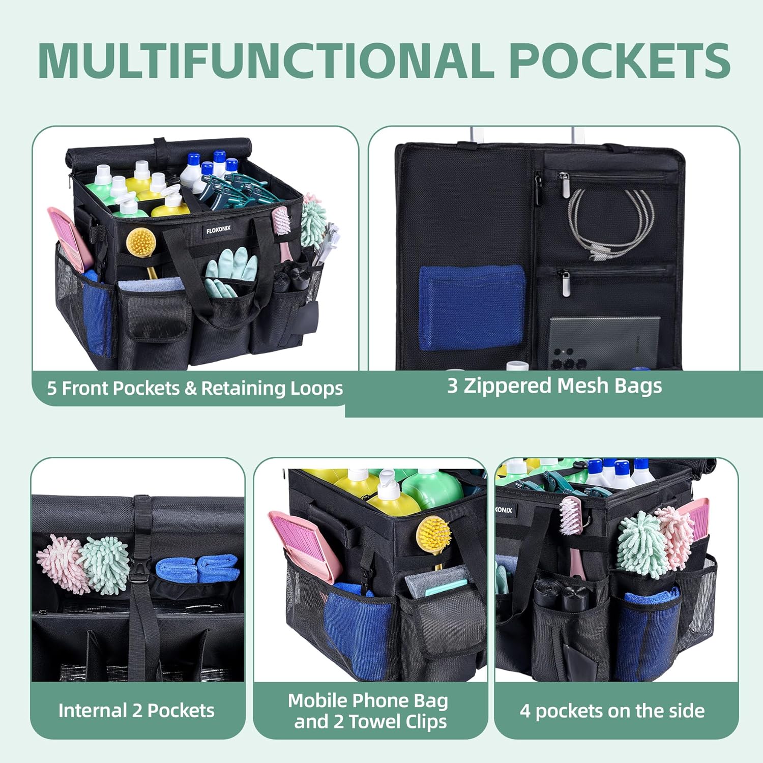 Large Rolling Cleaning Caddy Bag with Wheels, with Detachable Trolley, Cleaning Bags on Wheels for Housekeepers, Cleaning Cart Supplies Organizer for Home, Car, Picnic (Black)