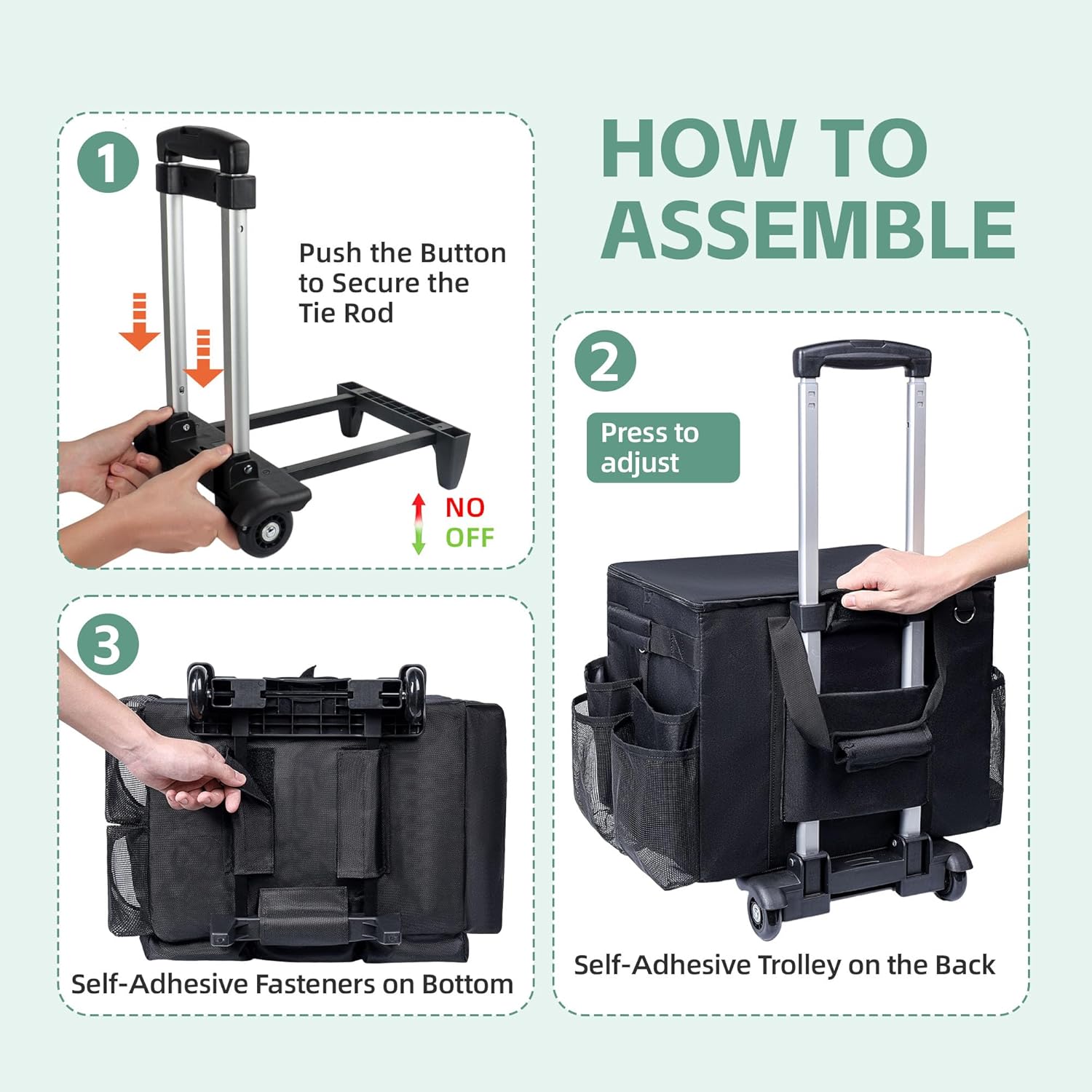- 3.**Detachable Trolley** The trolley can be easily detached, transforming the caddy into a portable bag for versatile use.