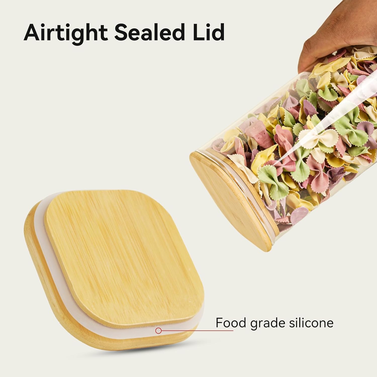 5 Set Glass Jars with Bamboo Lids, Square Food Storage Containers, Glass Pantry Storage Containers with Lids for Pasta, Cereal, Flour, Sugar