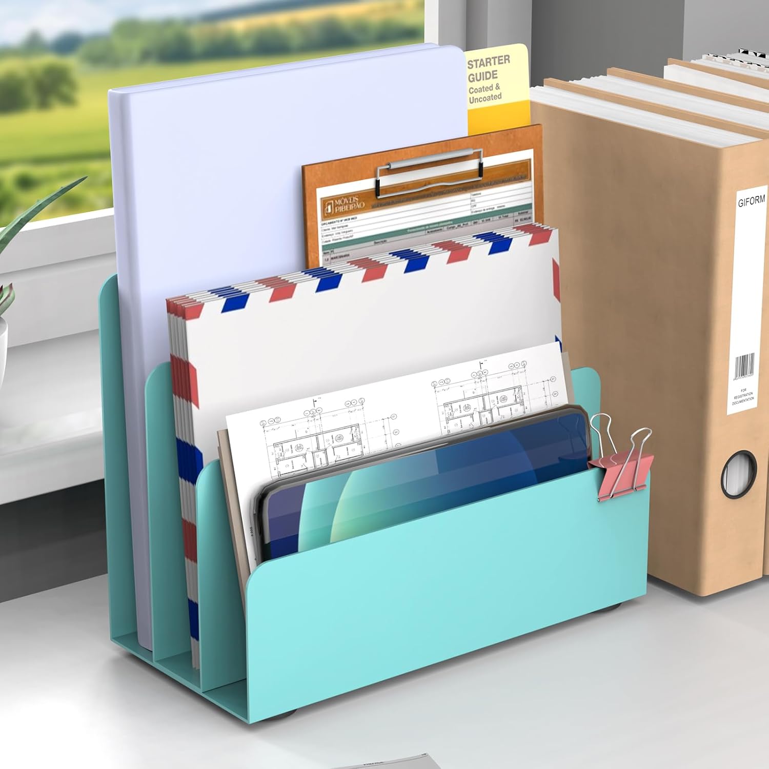 - 【Space-Saving Design & Style】This compact desk file organizer revolutionizes your workspace! Its smart vertical footprint liberates valuable desk real estate while housing letters, bills, and documents. A clutter-free zone boosts your focus, elevates efficiency, and sparks productivity – turning chaos into calm instantly.