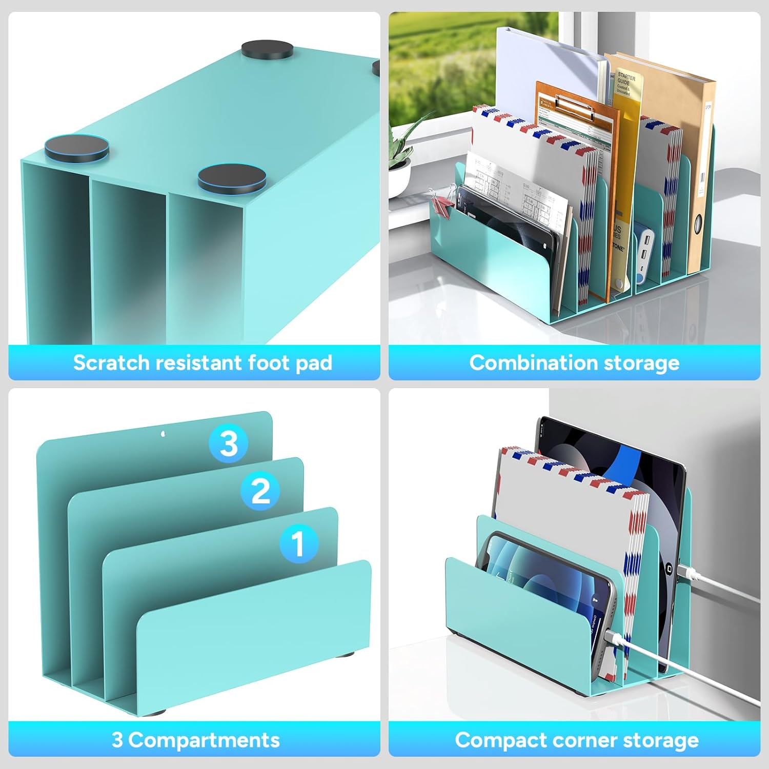 - 【High-strength Steel】This letter organizer is made of high-quality steel for weighted support, which is not easy to tip over; the edge adopts a smooth arc design, which is safe and reliable; the non-slip pads installed on the bottom can prevent scratches on the desktop.