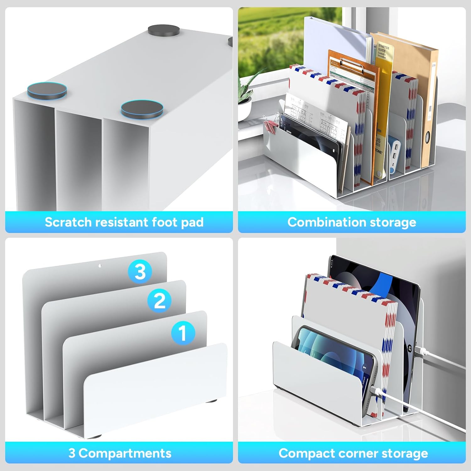 Mail Organizer Countertop, Small Desk File Organizer, Metal File Holder - Essential Workspace Organizers for Office Desk, Home Office (White)