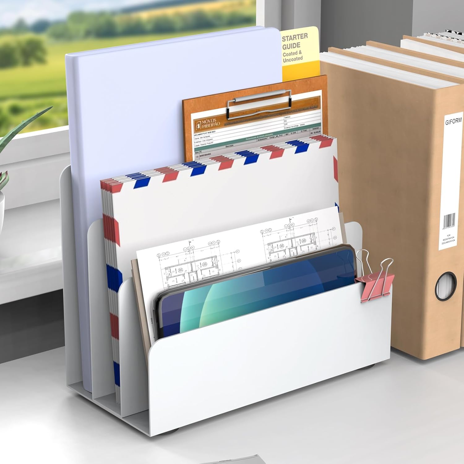 - 【Space-Saving Design & Style】This compact desk file organizer revolutionizes your workspace! Its smart vertical footprint liberates valuable desk real estate while housing letters, bills, and documents. A clutter-free zone boosts your focus, elevates efficiency, and sparks productivity – turning chaos into calm instantly.