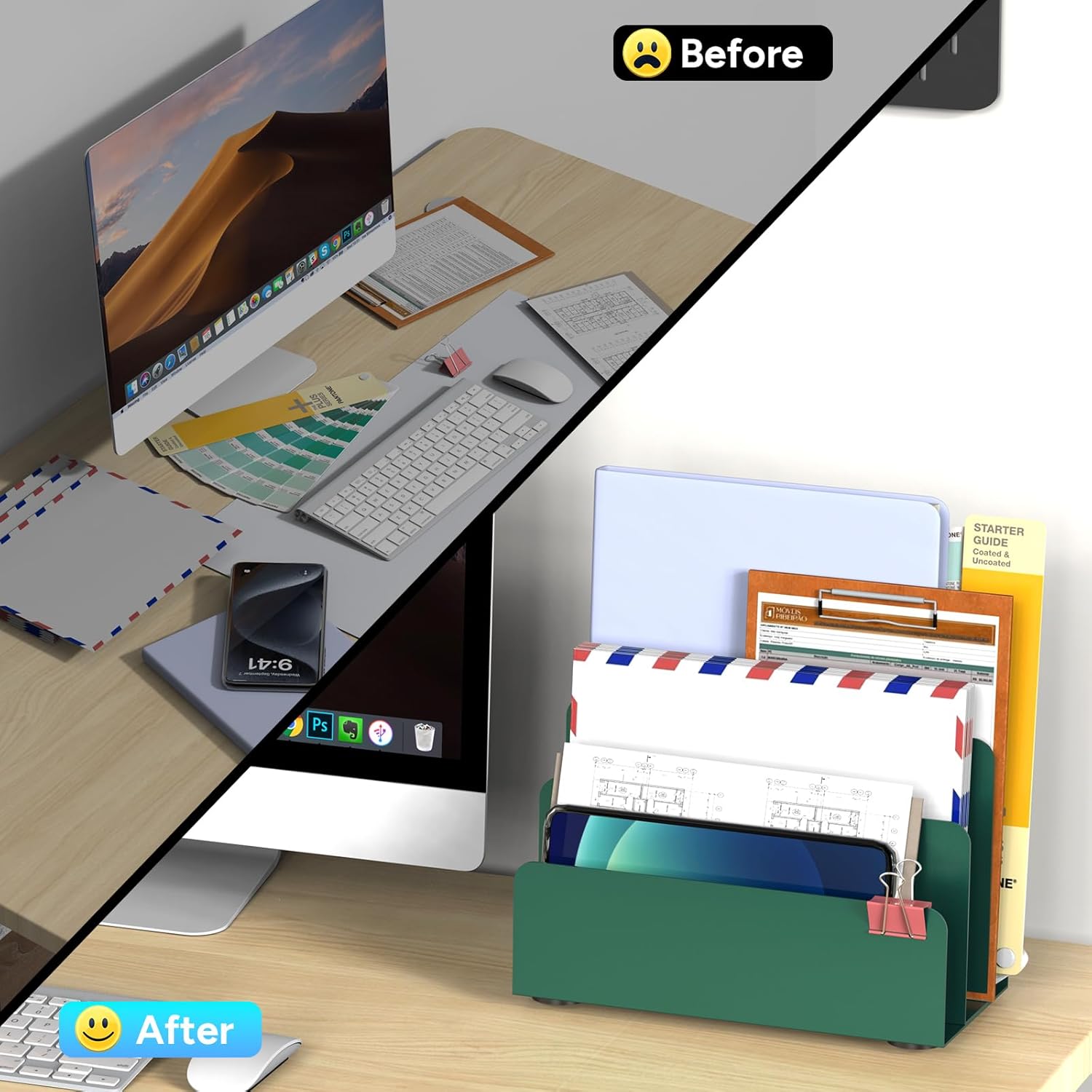 - 【Space-Saving Design & Style】This compact desk file organizer revolutionizes your workspace! Its smart vertical footprint liberates valuable desk real estate while housing letters, bills, and documents. A clutter-free zone boosts your focus, elevates efficiency, and sparks productivity – turning chaos into calm instantly.