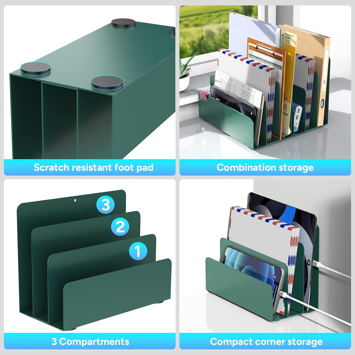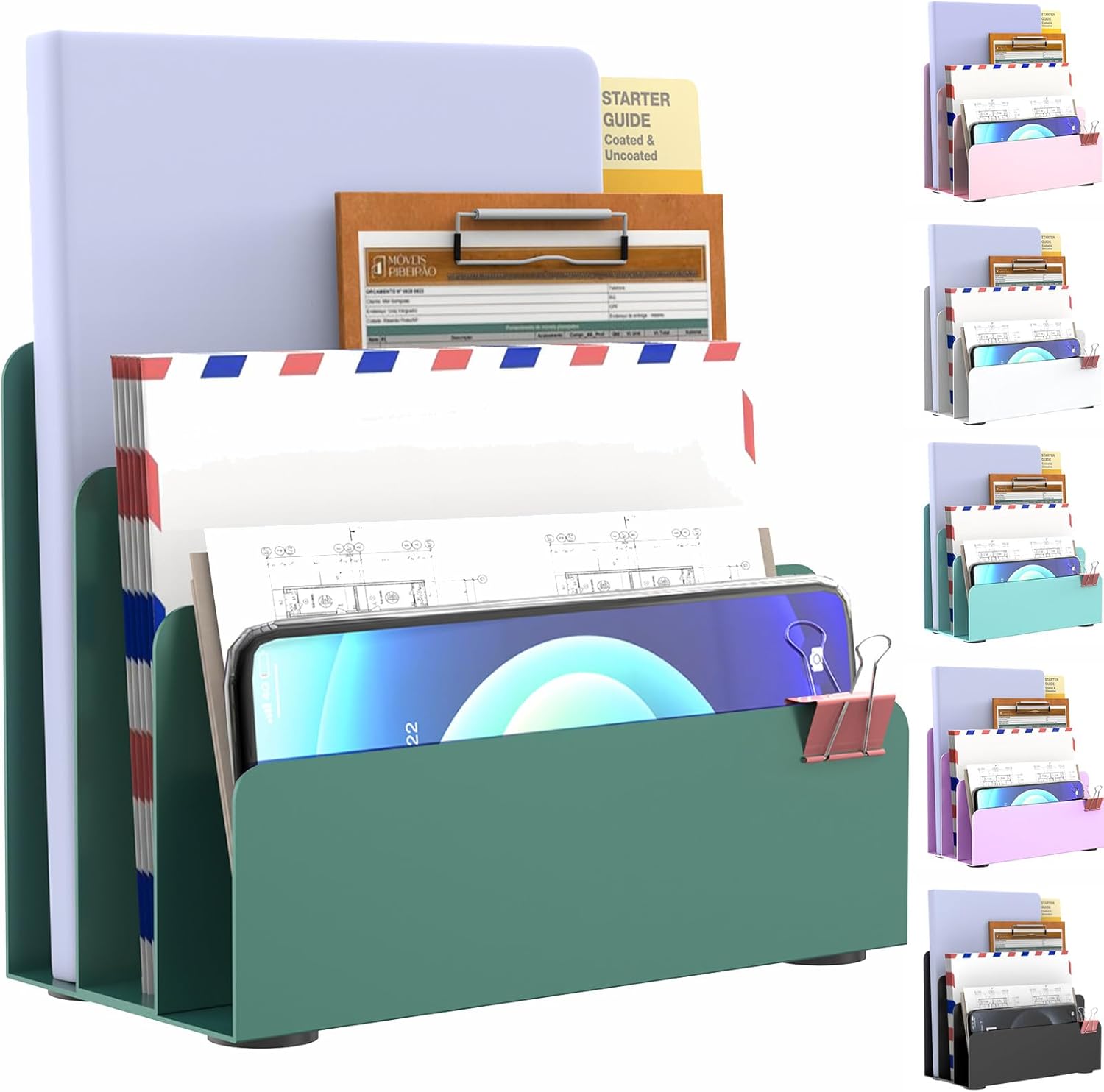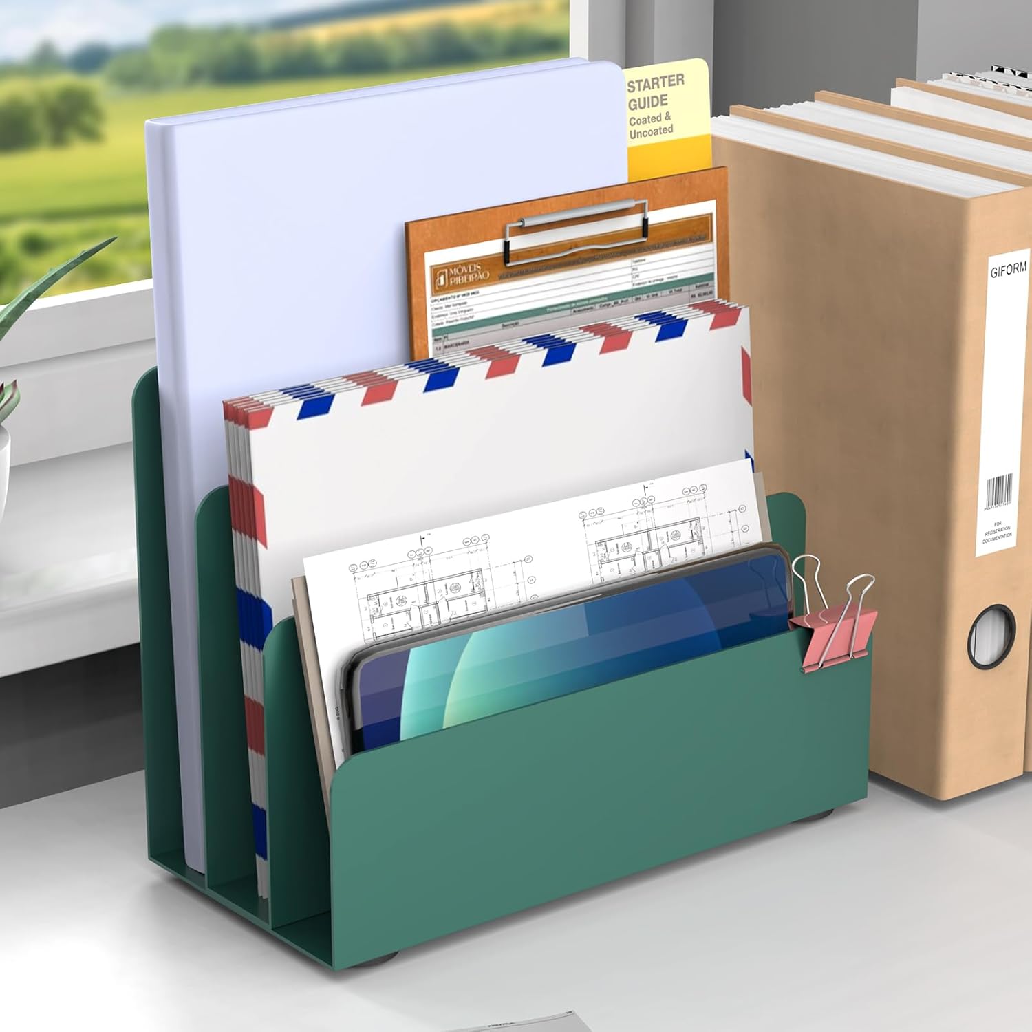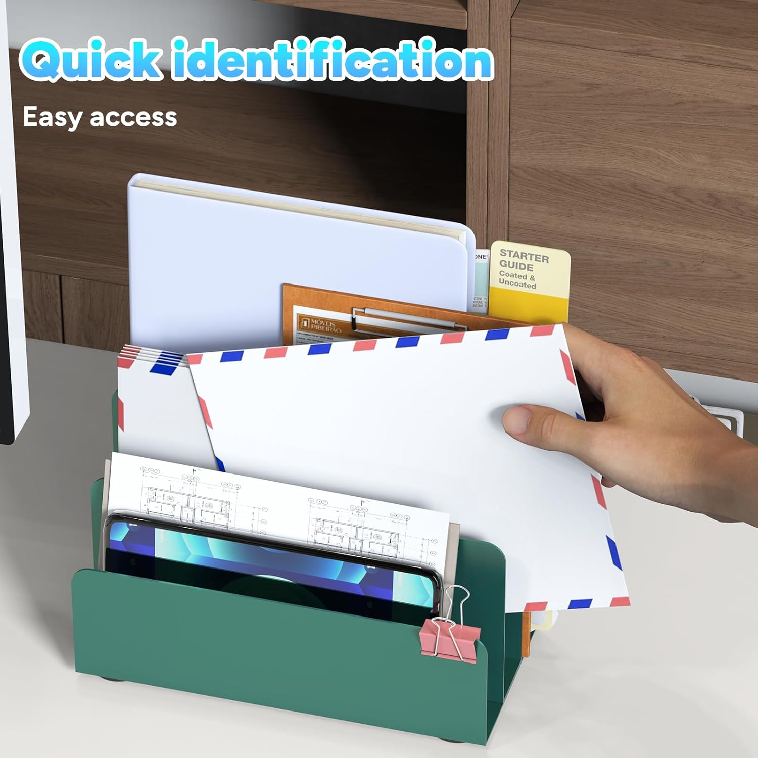 Mail Organizer Countertop, Small Desk File Organizer, Metal File Holder - Essential Workspace Organizers for Office Desk, Home Office (Green)