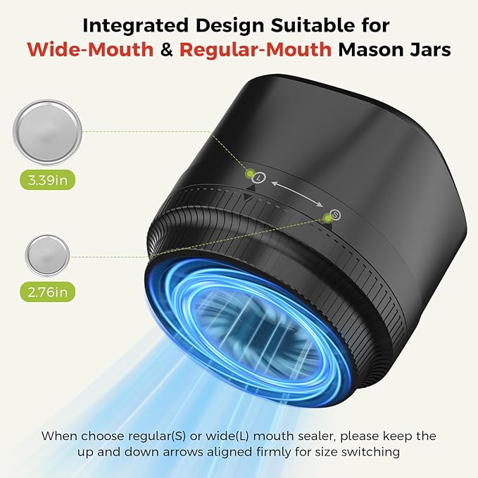 - Upgrade 3-in-1 Mason Jar Vacuum Sealer: This newly upgraded vacuum sealer effortlessly handles mason jars (regular & wide-mouth), vacuum bags, vacuum containers, and wine bottles. Its innovative built-in sealing converter enables instant switching between two types of mason jars -no disassembly or extra hoses needed. Experience unmatched ease and efficiency compared to other brands