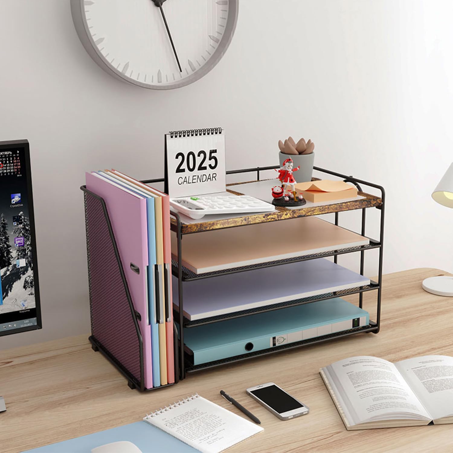 - 【Excellent Stability and Durability】The file organizer is made of metal with wood, which can support up to 40 pounds without bending or collapsing. The anti-scratch rubber feet protect your desktop from scratches and damage, ensuring your workspace remains tidy while holding the organizer firmly in place.