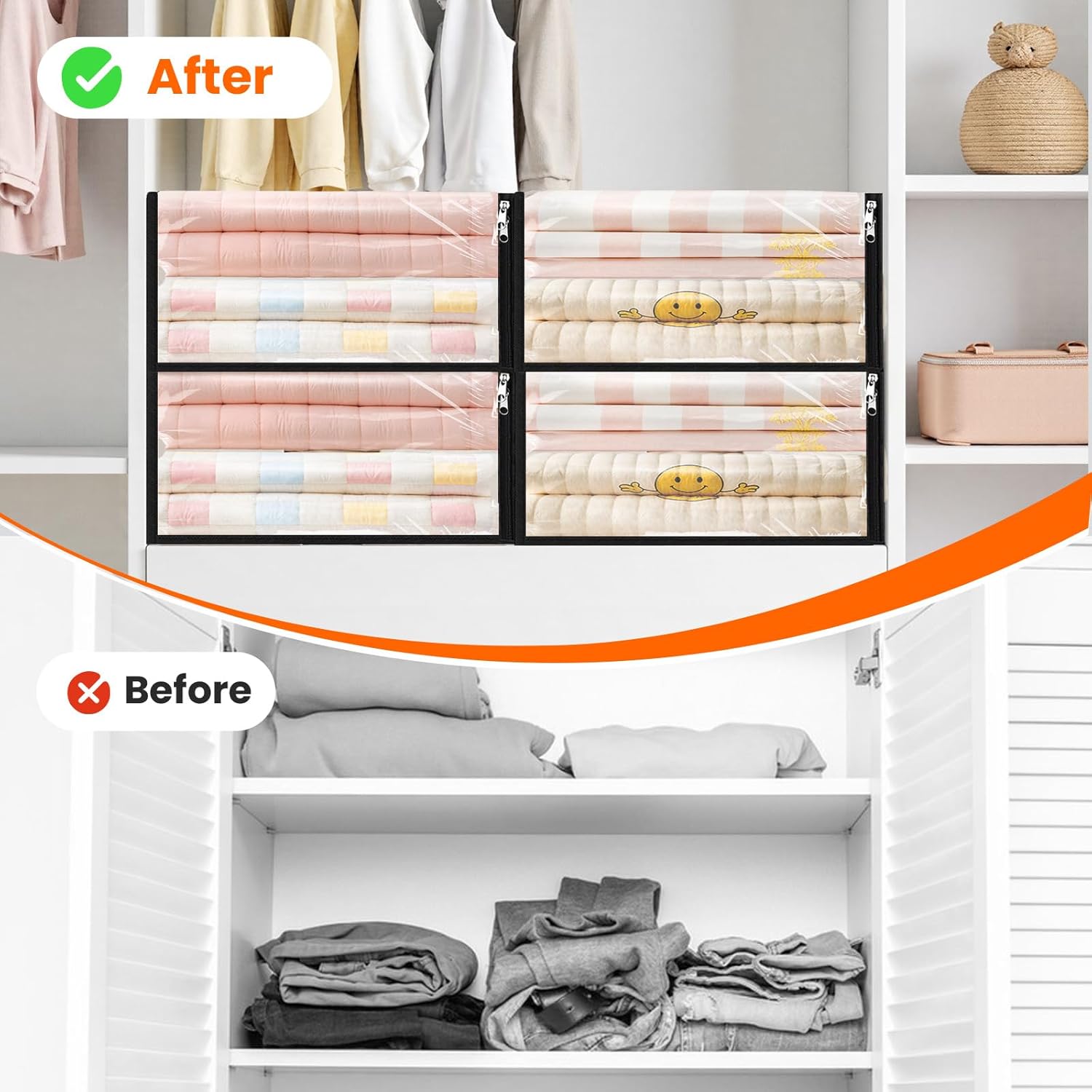 - Versatile Organizer for Busy Homes: Ideal for Sorting Clothes, Bedding, Linens, Blankets, Comforters, Or Seasonal Gear in Homes, Bedrooms, Basements, Dorm Rooms, And Rvs. Spacewhisper Bags Quickly Transforms Cluttered Areas into Impressively Tidy Spaces