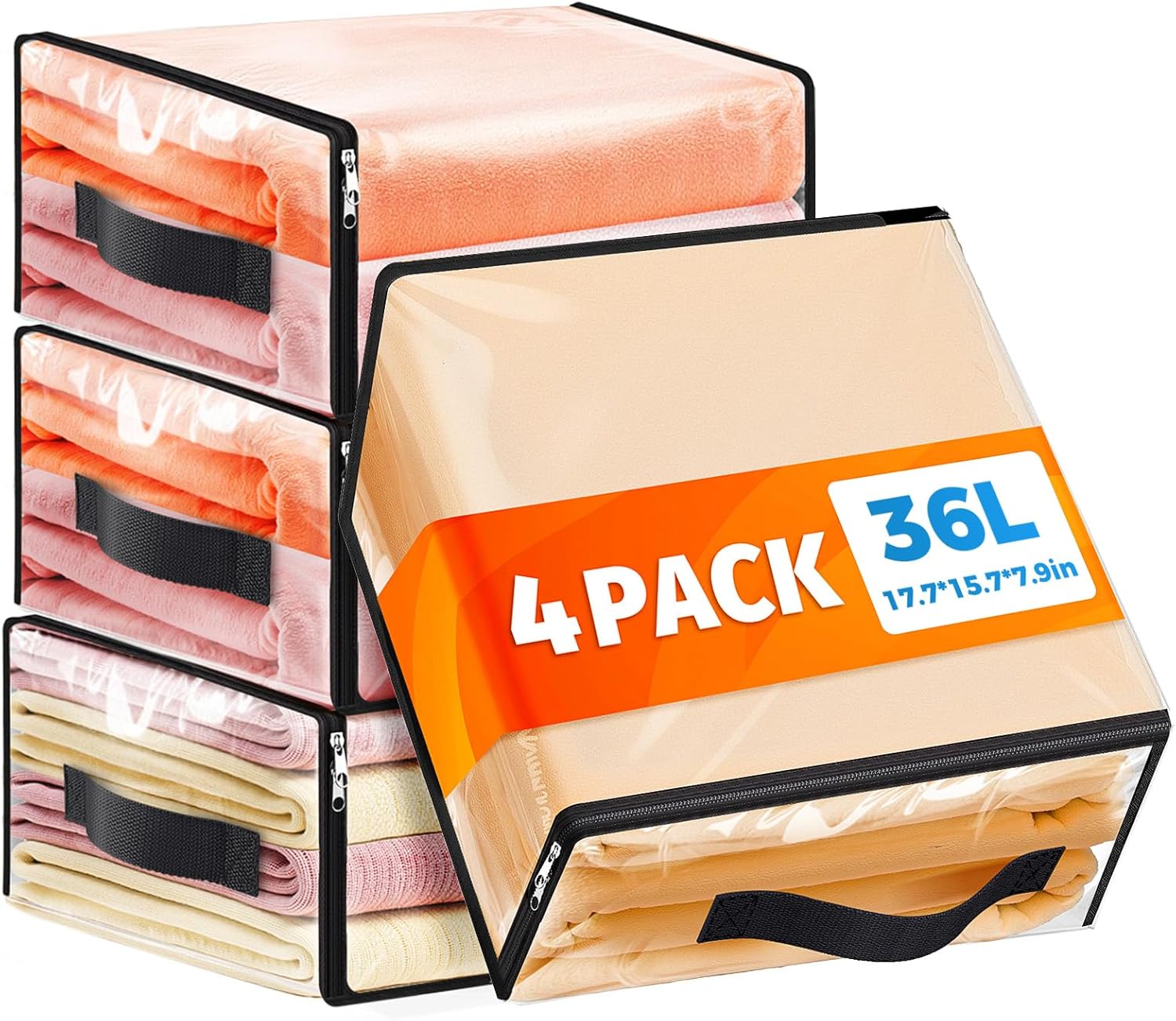 - Smart Capacity for Clutter Control: Our clear storage bags (4 included) each hold 17.7" x 15.7" x 7.9". Organize everything from daily essentials (cosmetics, books) to bulky items (sweaters, blankets, bedding). Maximize space by stacking vertically in closets, slide side-by-side under beds, or line up in moving boxes