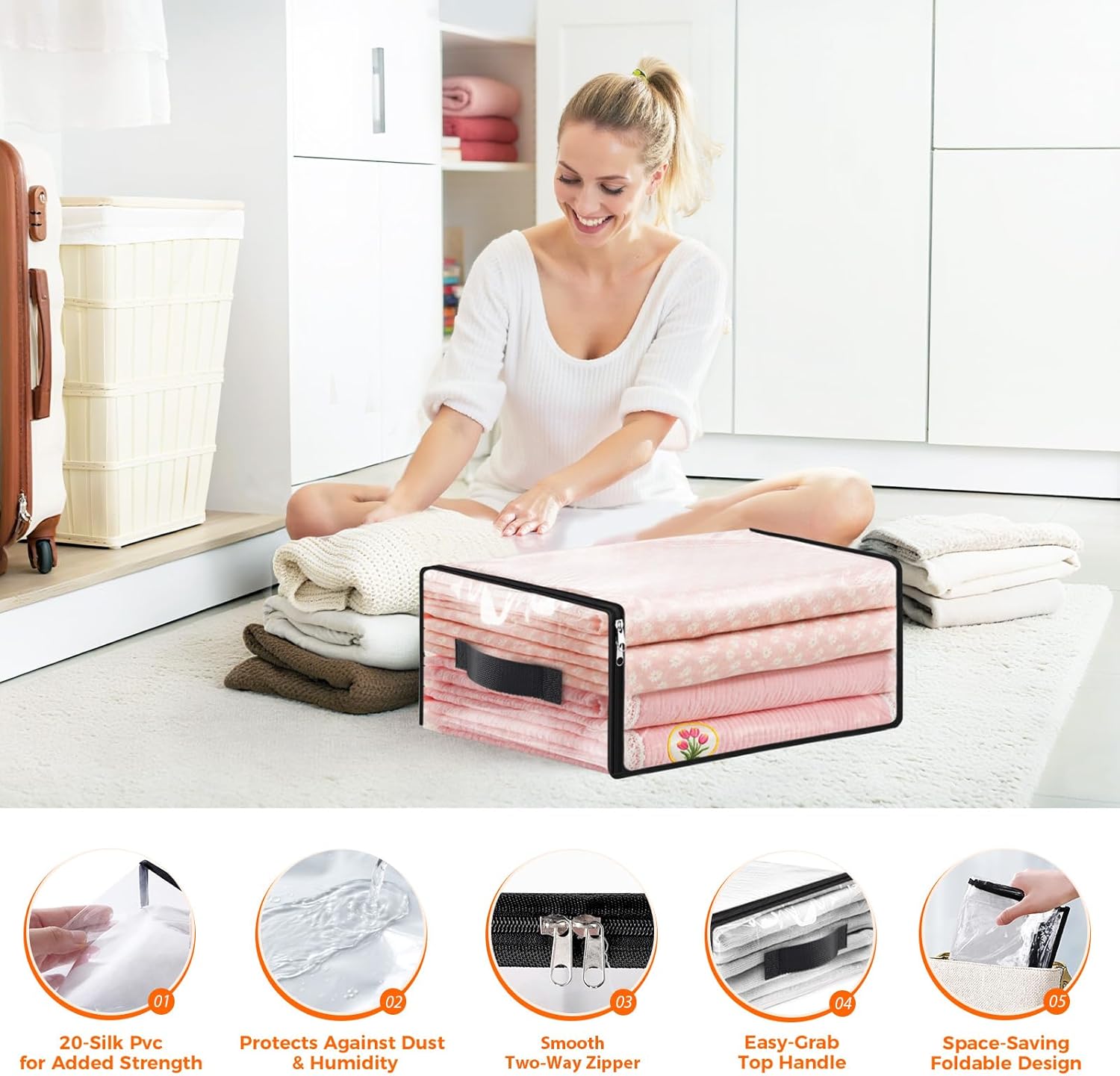 - Reinforced Handle for One-Finger Lift: Each clear storage bag features a reinforced handle for effortless, non-slip carrying. Strong stitching ensures long-lasting use, letting you lift even a full bag with one finger—perfect for shelves, closets, under-bed storage, and travel