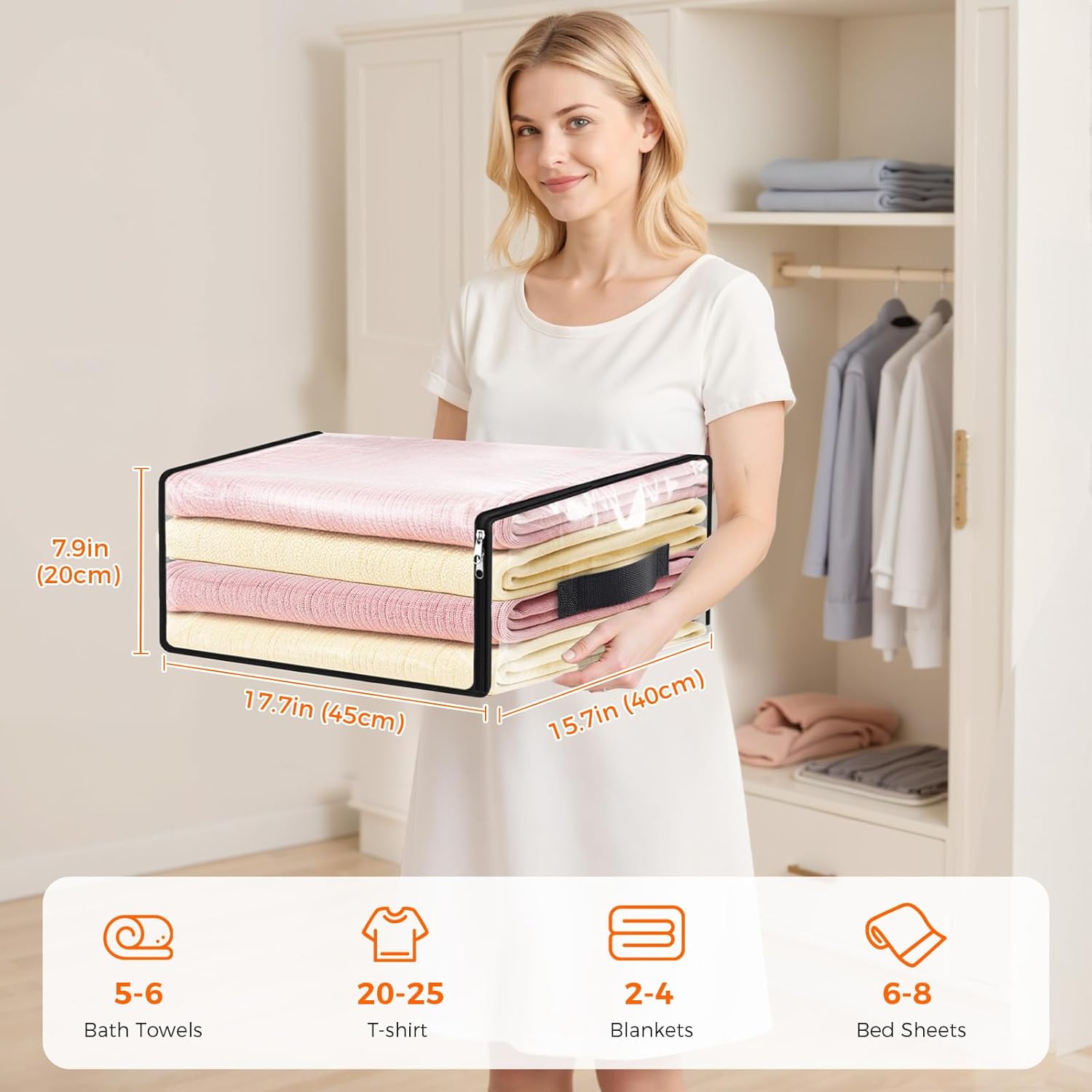 - Smart Capacity for Clutter Control: Our clear storage bags (8 included) each hold 17.7" x 15.7" x 7.9". Organize everything from daily essentials (cosmetics, books) to bulky items (sweaters, blankets, bedding). Maximize space by stacking vertically in closets, slide side-by-side under beds, or line up in moving boxes