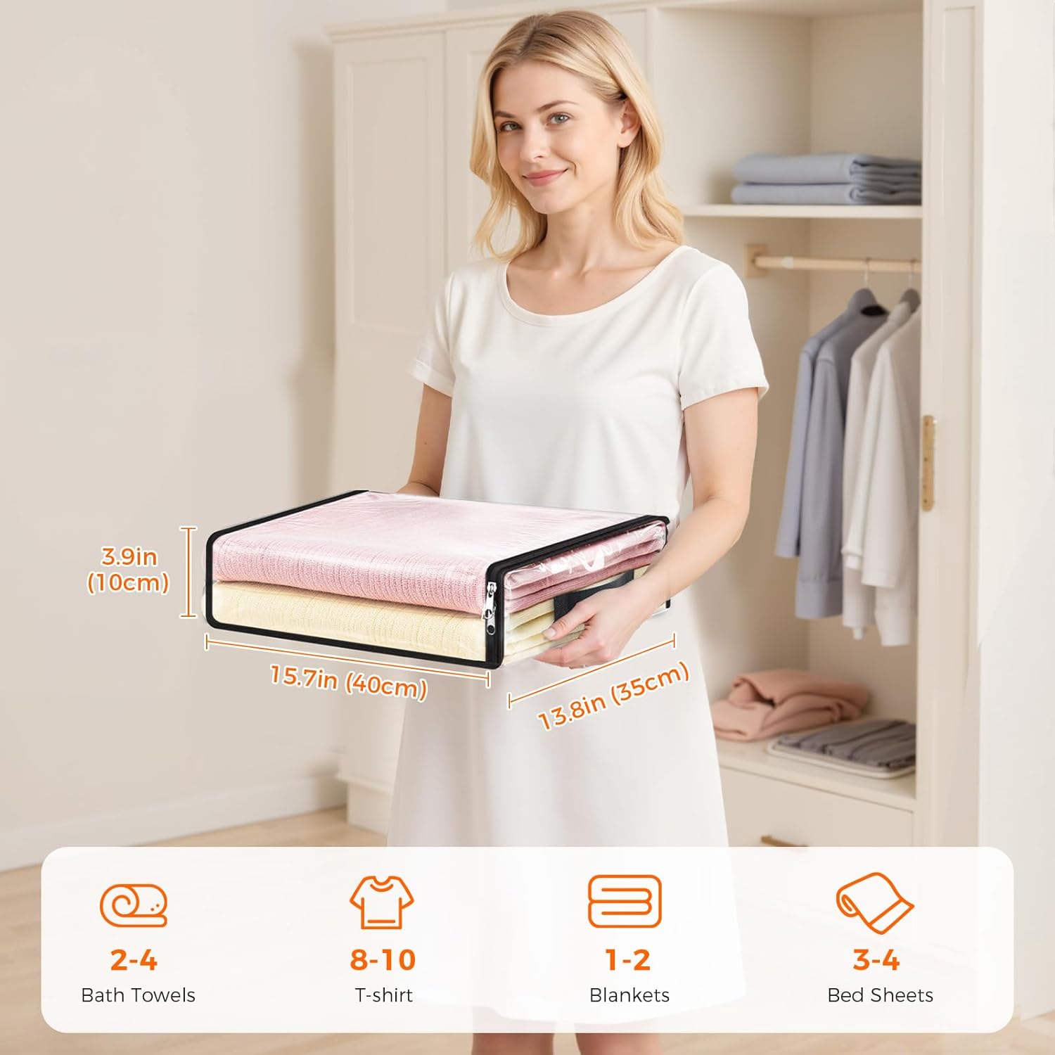 - Smart Capacity for Clutter Control: Our clear storage bags (10 included) each hold 15.7" x 13.8" x 3.9". Organize everything from daily essentials (cosmetics, books) to bulky items (sweaters, blankets, bedding). Maximize space by stacking vertically in closets, slide side-by-side under beds, or line up in moving boxes