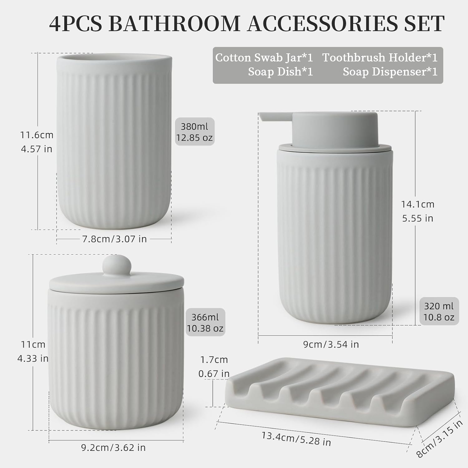 BosilunLife Ceramic Bathroom Accessories Set - Bathroom Counter Soap Set Light Grey Bathroom Decor Sets Accessories Bathroom Lotion Soap Dispenser and Toothbrush Holder Set, Soap Dish, Apothecary Jars