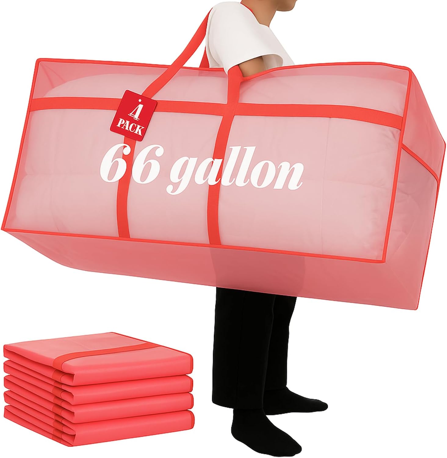 4 Pcs 66 Gallon Large Moving Bags with Zipper and Handles Foldable Storage Duffle Bags Heavy Duty Extra Large Totes for College Dorm Travel Clothes Blankets Bedding Moving (Jelly Pink)