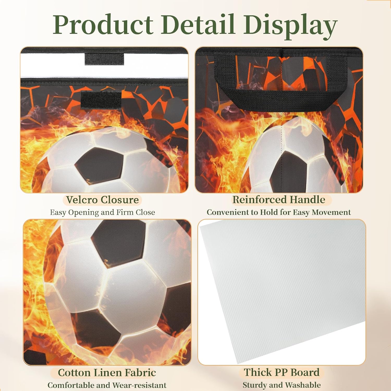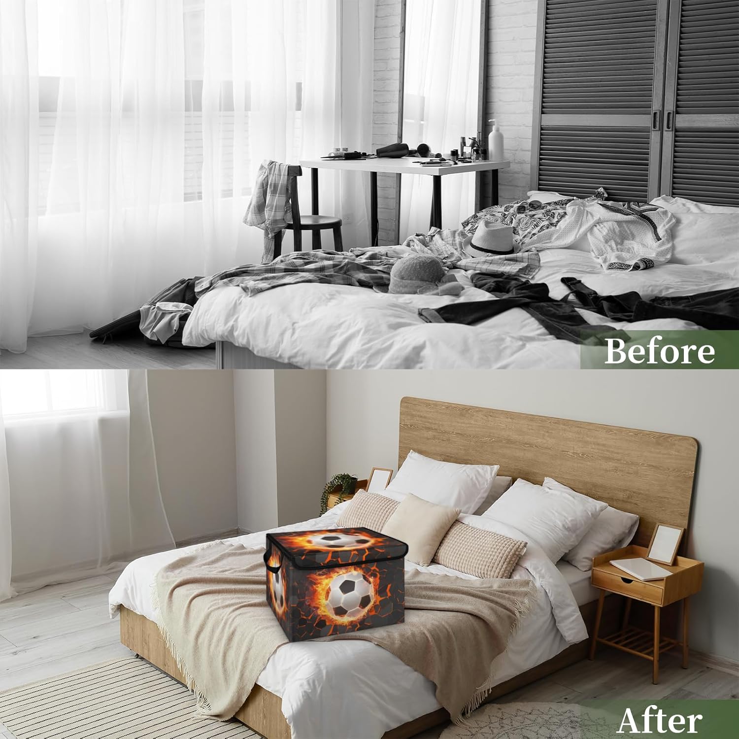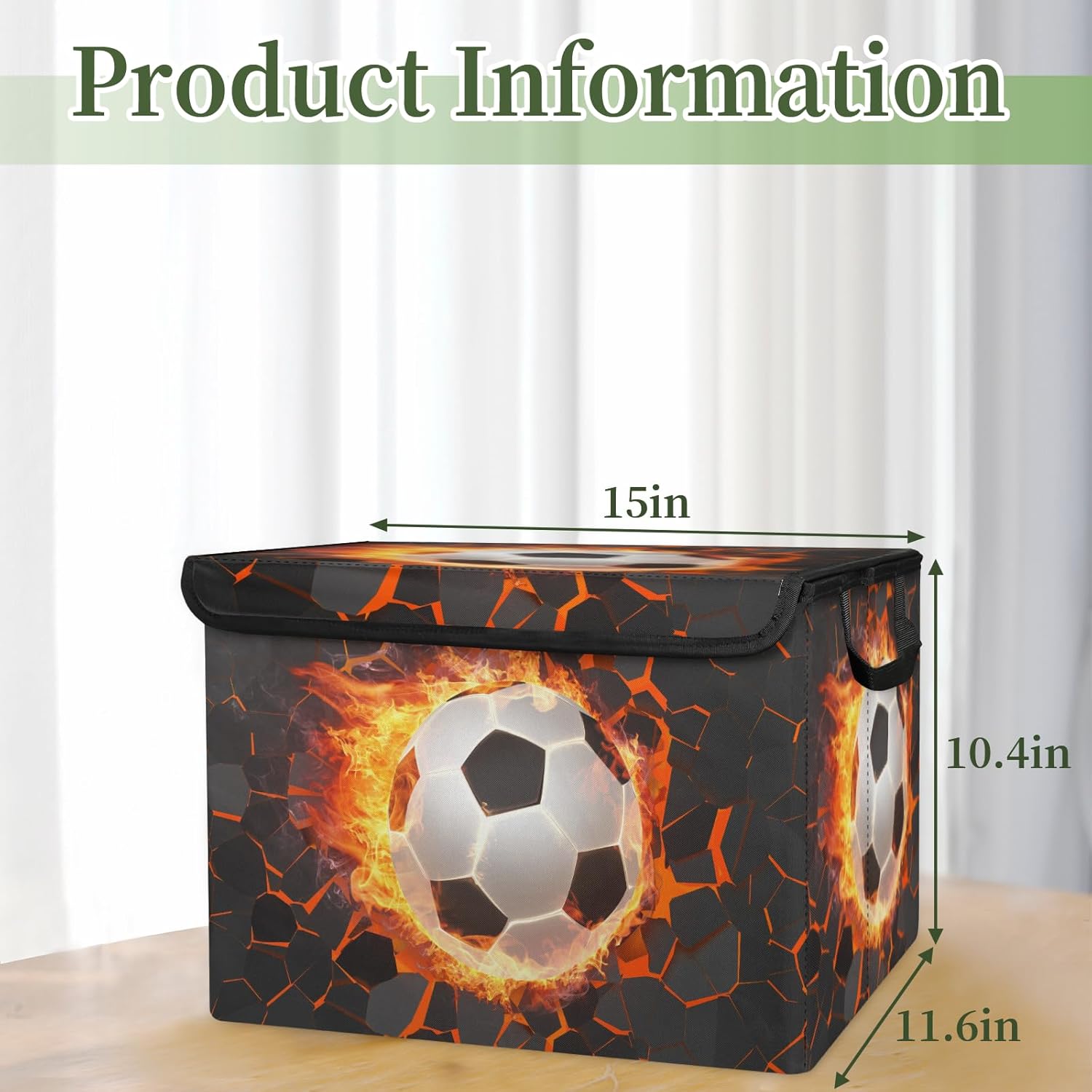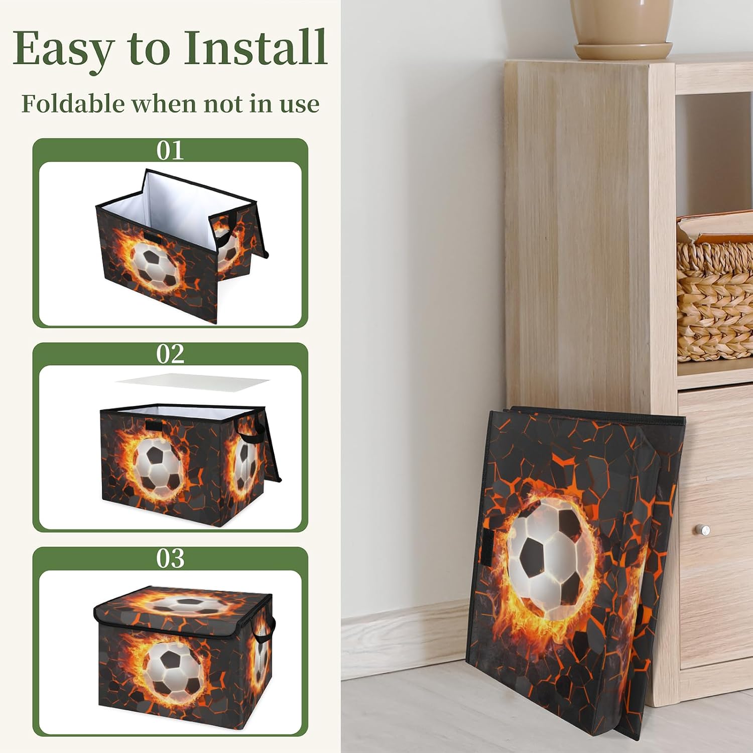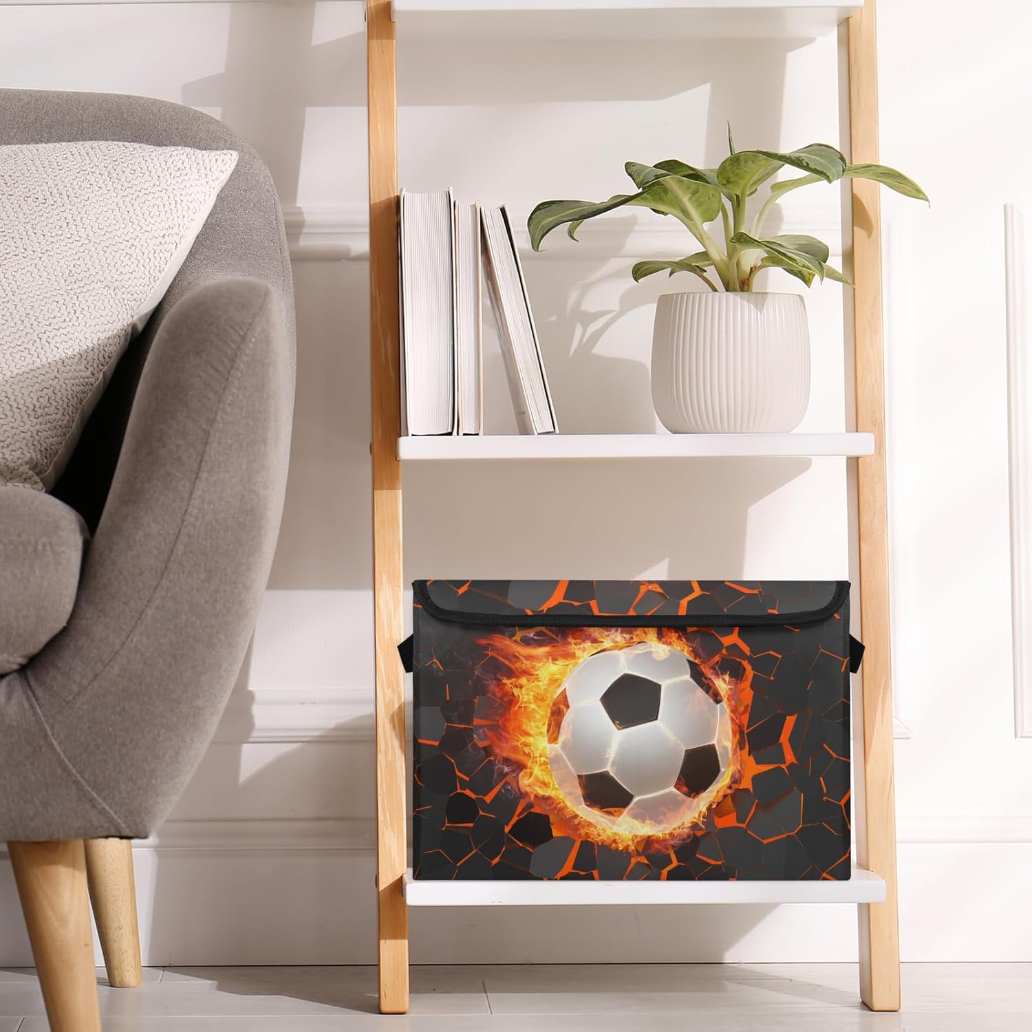 Closet Storage Bins Storage Baskets for Organizing with Flip-Top Lid & Handles, 27 Quart Large Linen Closet Organizers and Storage Cubes, Decorative Wardrobe Boxes for Organization (Cool Soccer)