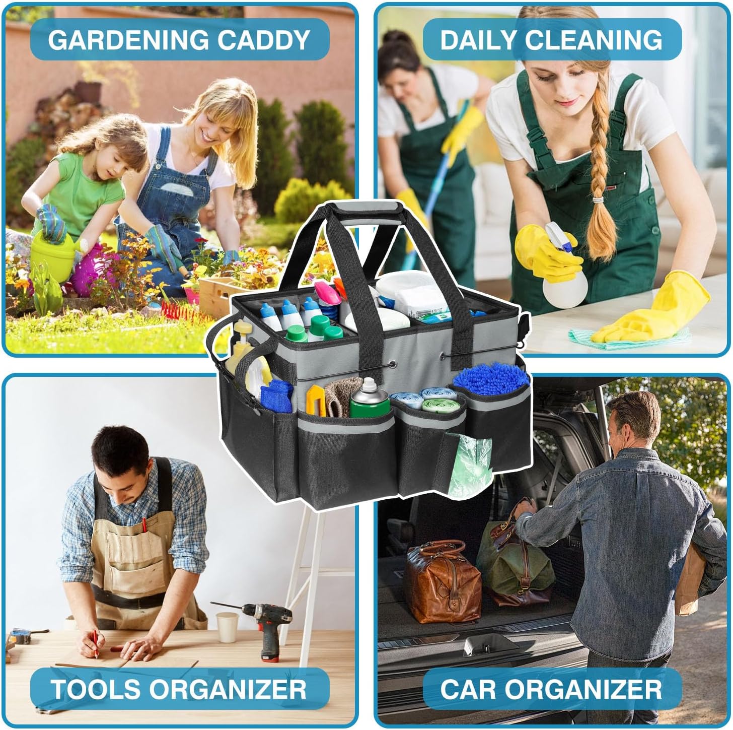 - 【Unique Design】The organizer with handles for cleaning tools comes with 2 adjustable dividers for you to customize the internal layouts of the bag. Keep your cleaning items well-organized and neatly. Hard insert base plate supports items sturdily