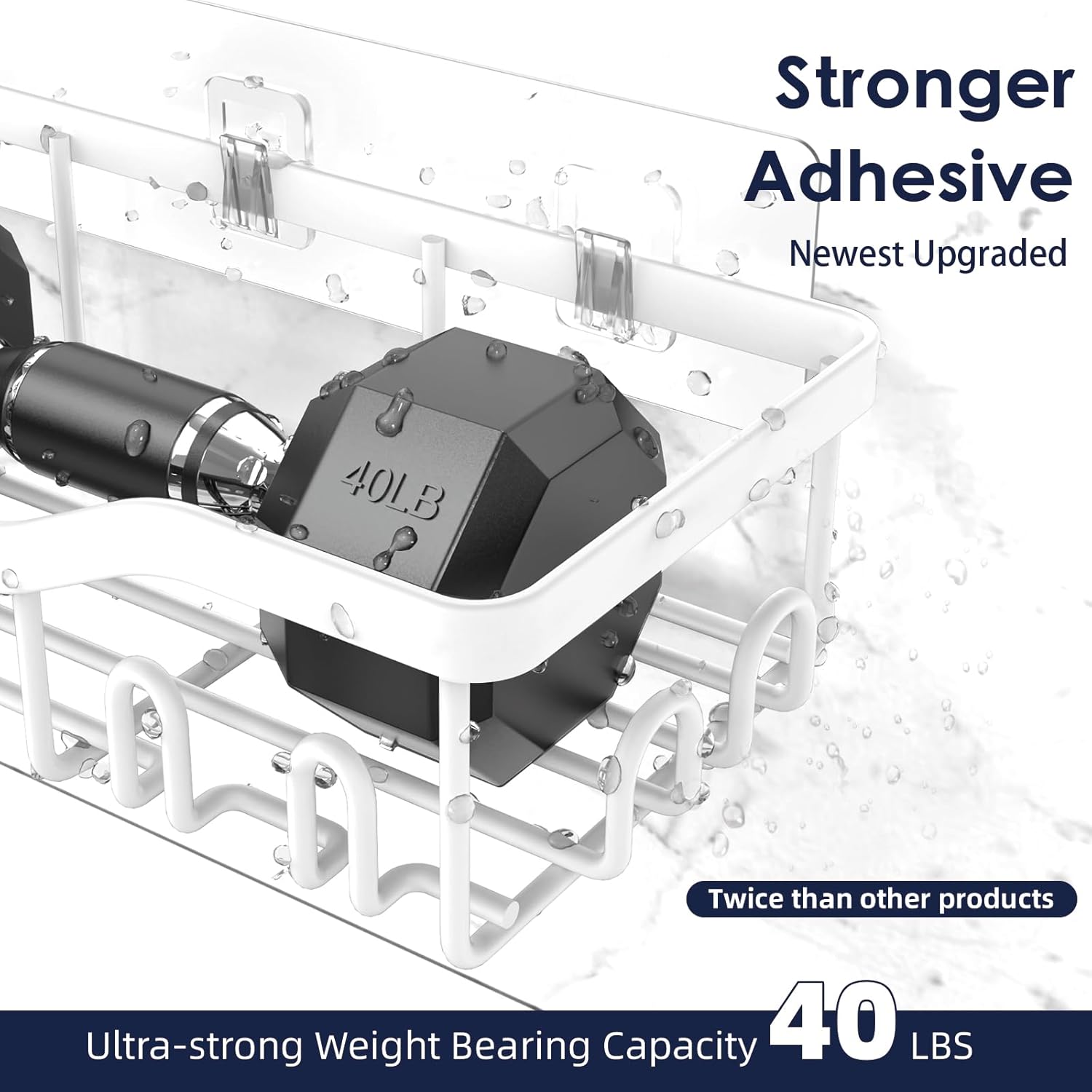 - Newest Upgraded Stronger Adhesive Bathroom Caddy: The transparent traceless adhesives give ultra-strong reliability with up to 40 lbs of bearing weight, which is tested by professional institutions. The bathroom shower organizer has twice the load-bearing capacity of the old version. NESOMI bathroom shelf can be installed without drilling. The storage shelves will never worry about falling issues after proper installation, and make your family space use to the extreme