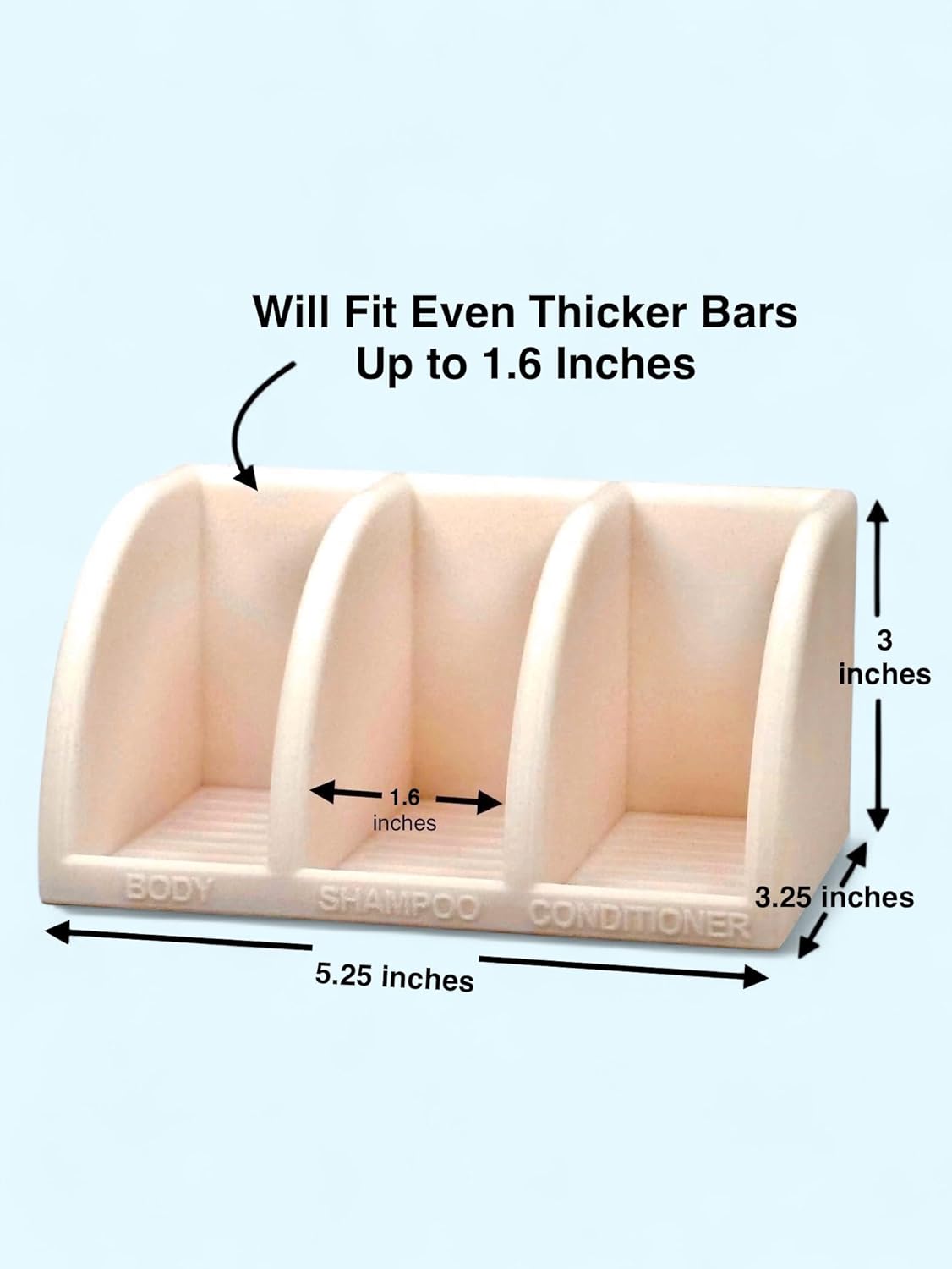 - MULTI-BAR HOLDER – Fits soap, shampoo, and conditioner bars all in one spot to keep your space neat.