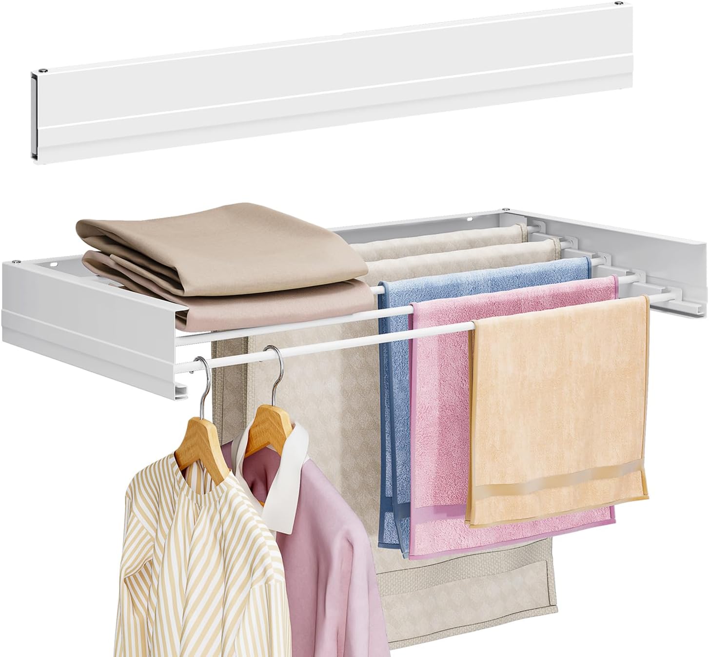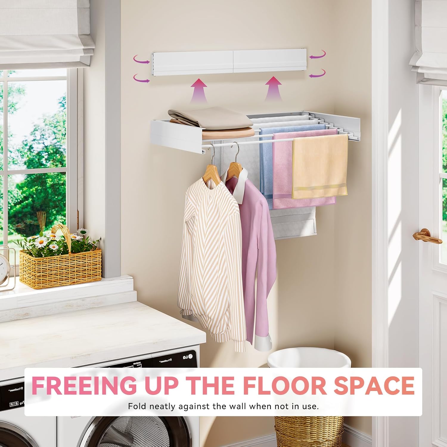 - Space-Saving Pro - The retractable clothes drying rack folds flat against the wall in less than 1" thick, making it perfect for small spaces like bathrooms, balconies, and laundry rooms without sacrificing drying capacity.