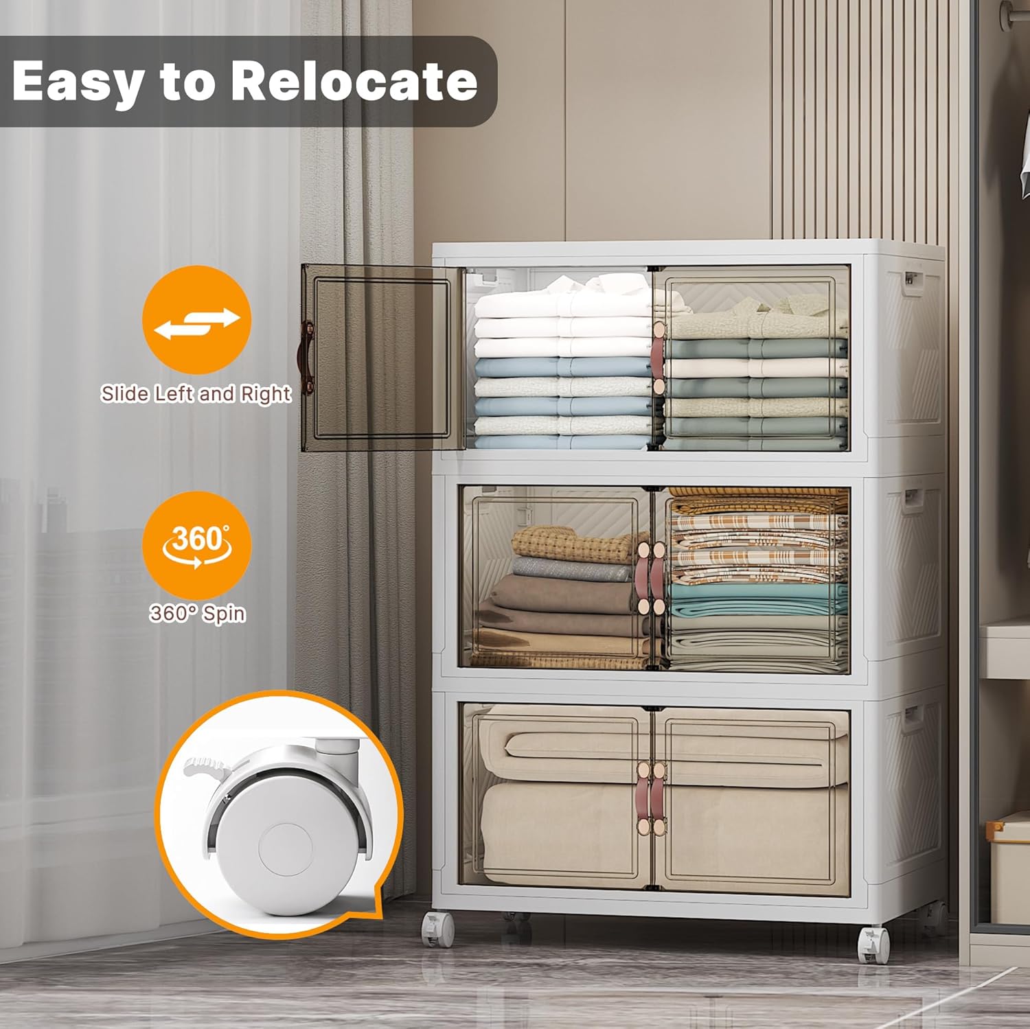 - 【Smooth Mobility with Locking Wheels】: Easily move your storage wherever you need it. These stackable storage bins with wheels feature four smooth-rolling casters, including two locking brakes, keeping your bins stable yet mobile — great for bedrooms, dorms, or offices.