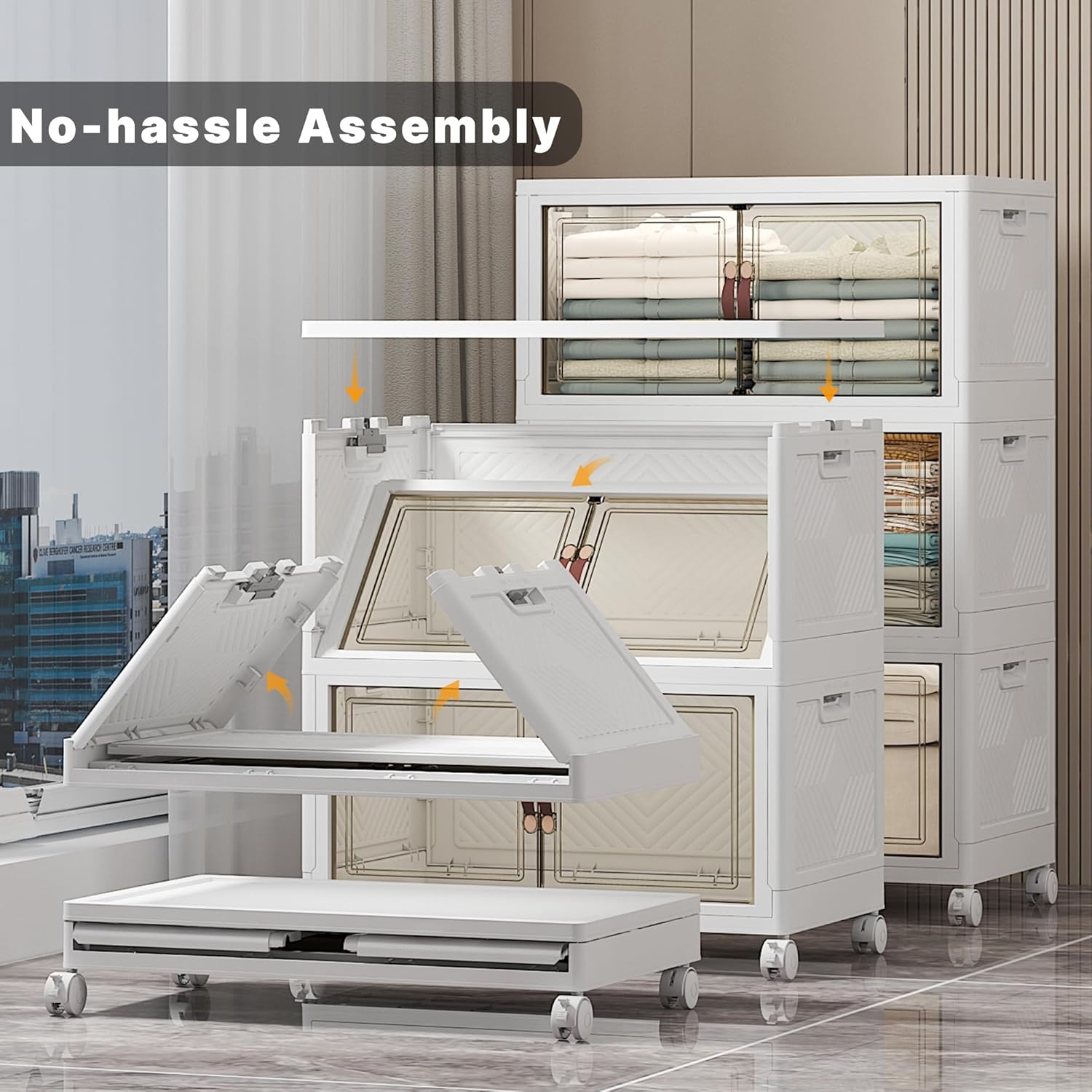 Extra Large Stackable Storage Bins with Lids & Wheels & Door, 672QT-112QT/28GAL*6Pack Foldable Collapsible Closet Organizers, Plastic containers drawers for bedroom Dorm