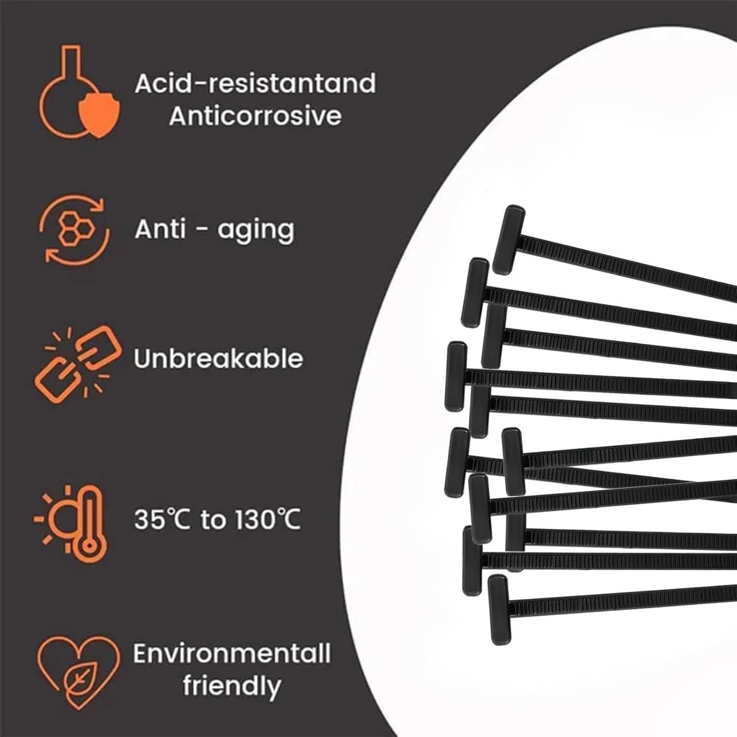 - Nylon Zip Ties with Pin and Button: These zip ties feature a secure buckle design for a long-lasting hold on wires, straps, and accessories. No tools are needed, enabling quick fixes for beginners or during emergencies.