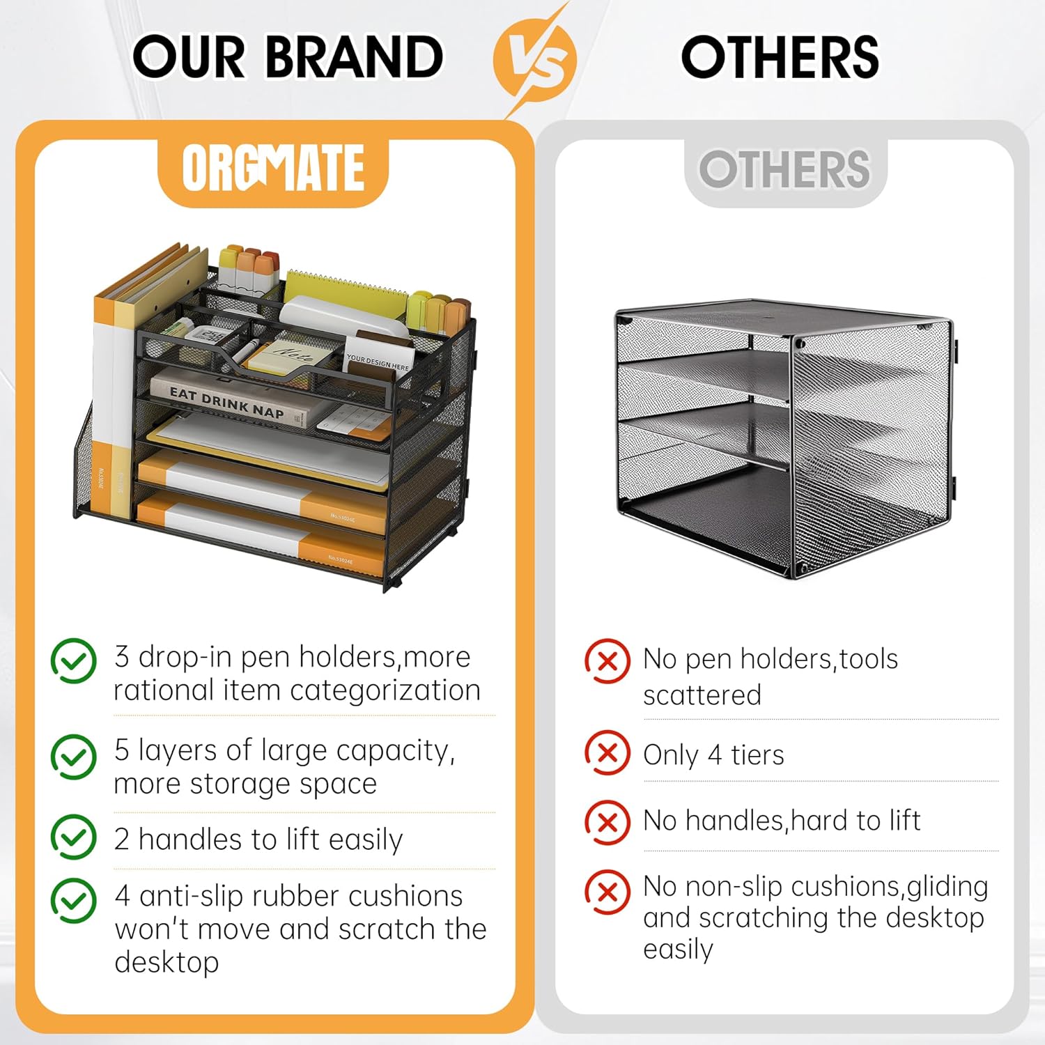 - User Friendly-2 round wrap-around handles + 4 rubber anti-slip feet, provide you with a comfortable grip at the same time, can make the letter tray organiser is not easy to slide and scratch the desktop, to protect the surface of the desktop. Perfect as a file organizer for desk or document organizer, it fits seamlessly into compact workspaces or classroom organization setups
