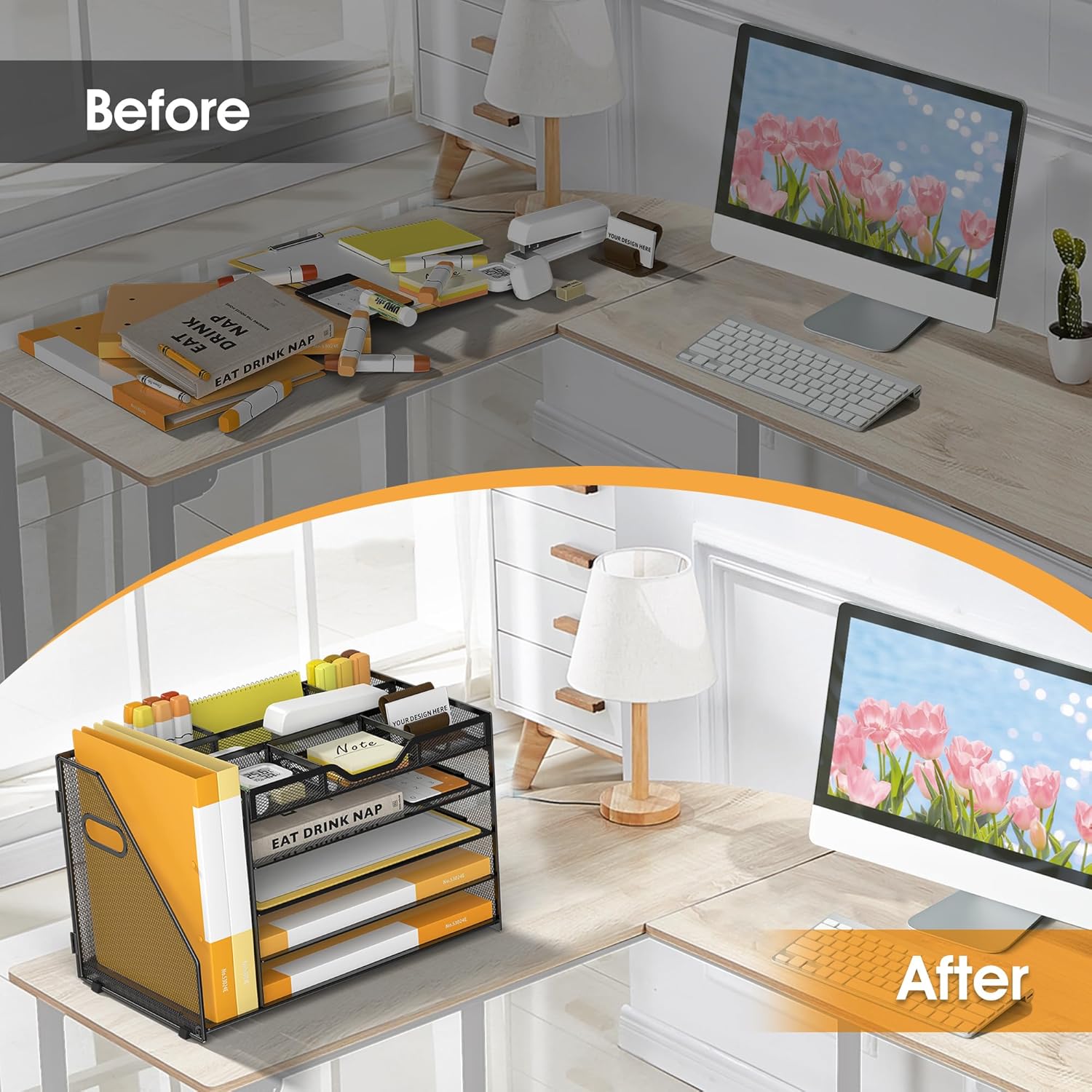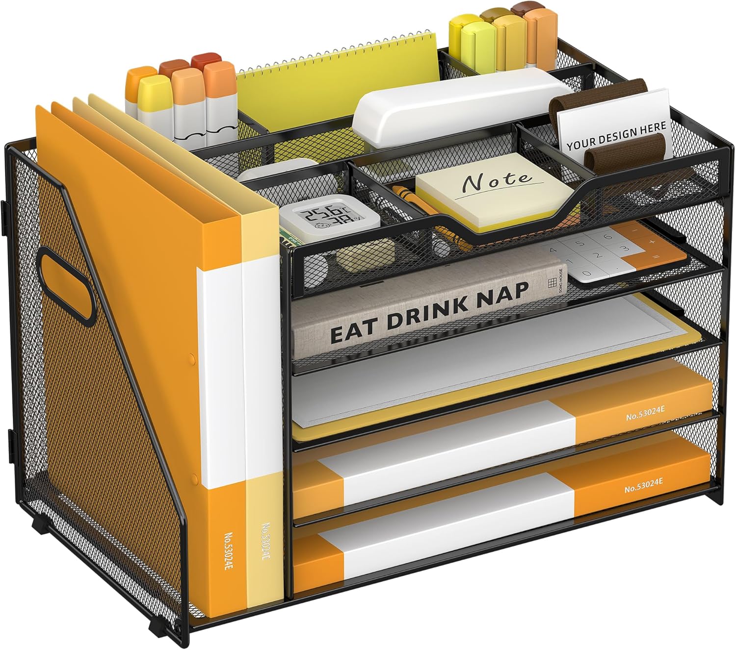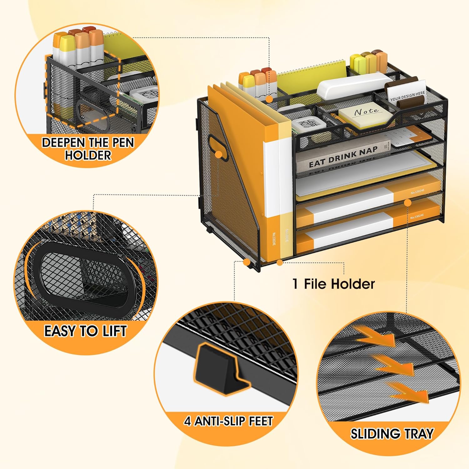 - Quality Materials and Superb Craftsmanship-Featuring a lightweight and durable metal mesh construction with a sturdy frame and powder-coated finish that ensures the desktop file manager won't bend or break when holding large quantities of paper, files and books, the file manager has a smooth finish that complements the office's work decor
