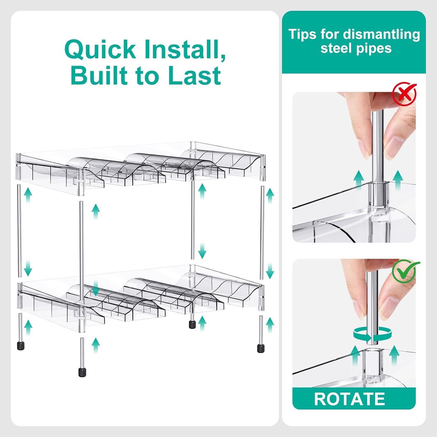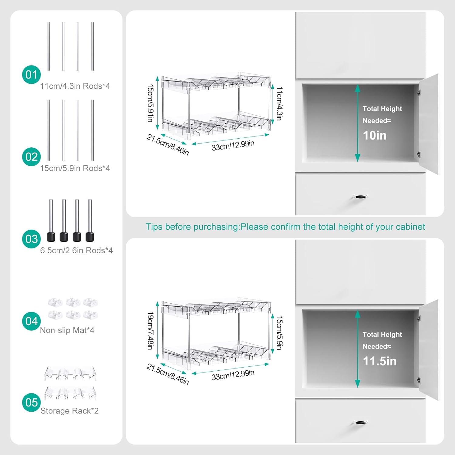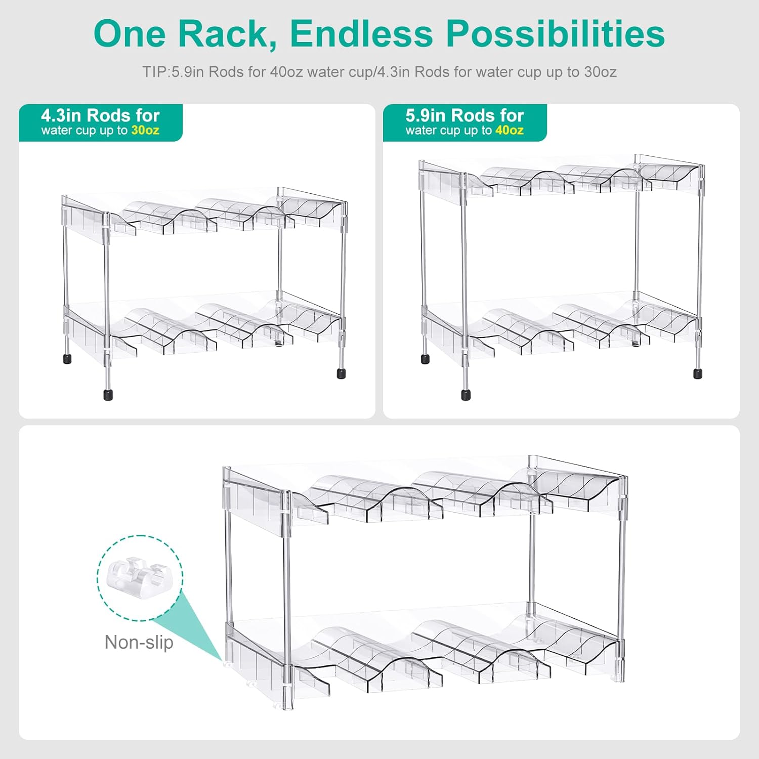 - 【Two Height Combinations | Exclusive Interchangeable Rods】:This storage rack comes with two different lengths of metal rods (11cm and 15cm)! This means you can freely choose the perfect arrangement based on the height of your cups or bottles. Want more compact storage? Go with the 11cm rod. Need to store taller sports bottles or wine bottles? Switch to the 15cm rod. Truly personalize your storage and make efficient use of vertical space.