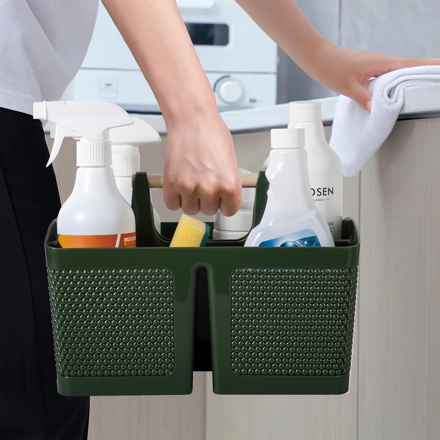 rejomiik Portable Shower Caddy Basket Plastic Cleaning Caddy Organizer Storage Tote with Handle for Bathroom, College, Dorm Room Essentials, Dark Green